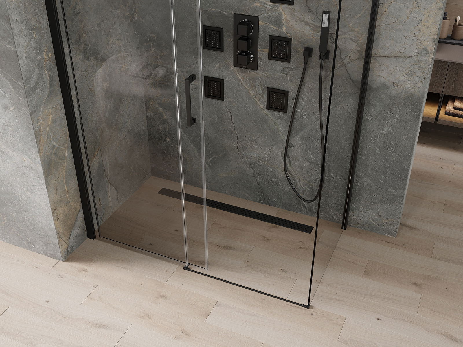 De Produit kann, ofhängeg vun den Ufuerderungen, souwuel um Duschenzeechen wéi och direkt um Buedem montéiert ginn. Den universelle Montagewee erlaabt d'Upassung vum Produit un verschidde Aarte vu Buedzëmmer an Raumkonfiguratiounen.