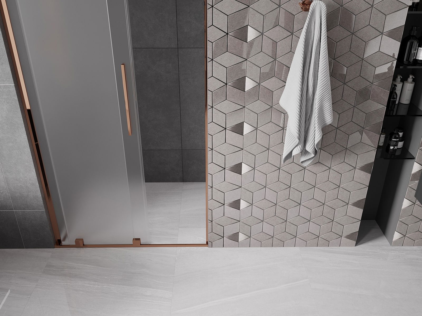 En handlecht a komfortabele Grëff ass aus Edelstol gemaach. E modernen Design an enger Ofschloss der Faarf vun de Profiler ugepasst, gëtt et en moderne a stilvolle Look, deen d'Aesthetik vun all Buedzëmmer ervirhieft.