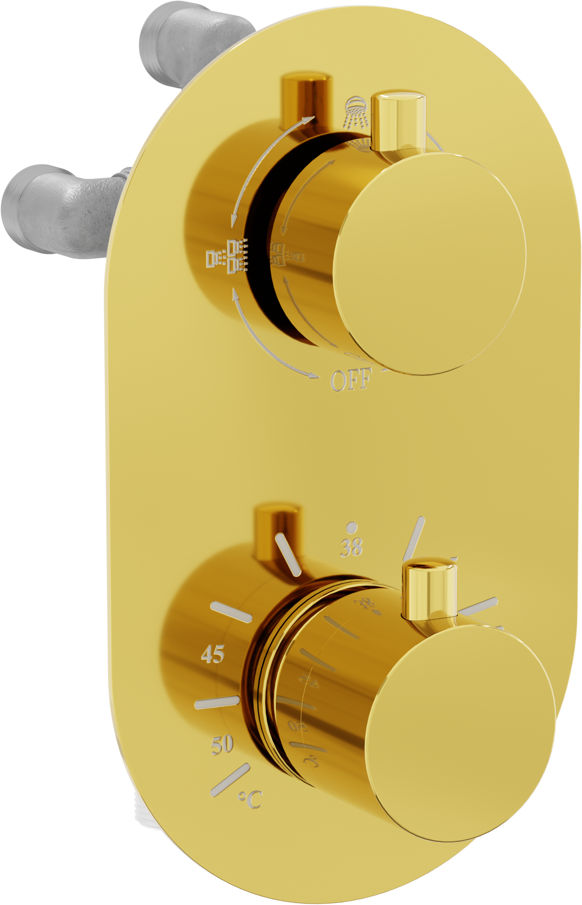 Den Thermostat erlaabt et, d'Waassertemperatur anzesetzen, déi en während dem Baden hält. Et ass eng innovativ Léisung, déi net nëmmen de Komfort suergt, mee och erlaabt et, plëtzlech Temperaturspréng an onangeneem Verbrennungen z'evitéieren.