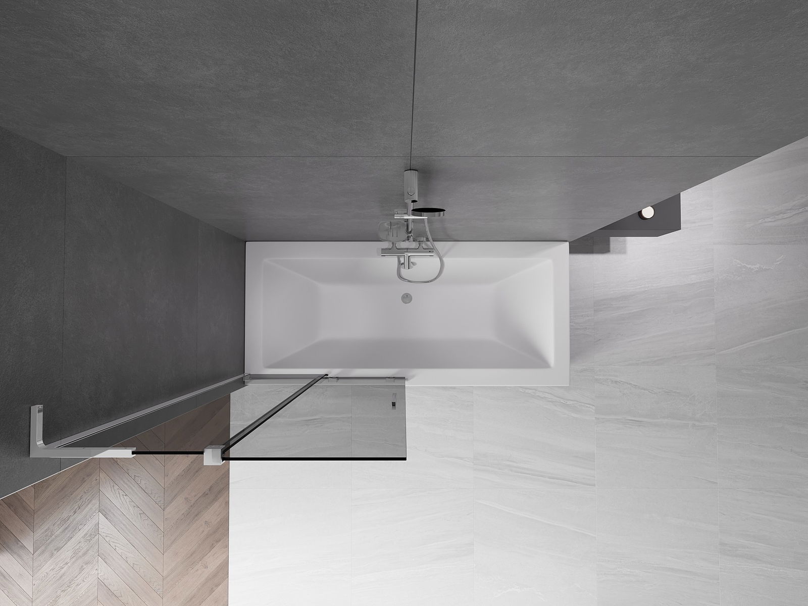 Dank dem universellen Montagesystem kann de Paravent je no Bedierfness op der rietser oder lénkser Säit montéiert ginn. Sou kanns de eng Dusch plangen, déi op de Raum vun der Buedzëmmer ugepasst ass.