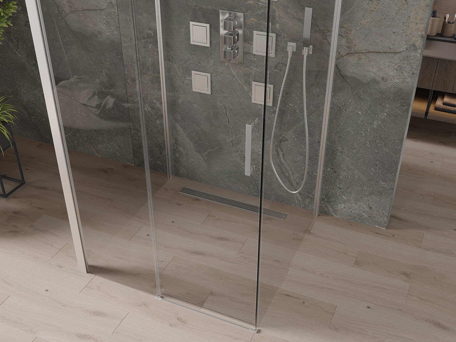 De Produit kann, ofhängeg vun den Ufuerderungen, souwuel um Duschenzeechen wéi och direkt um Buedem montéiert ginn. Den universelle Montagewee erlaabt d'Upassung vum Produit un verschidde Aarte vu Buedzëmmer an Raumkonfiguratiounen.