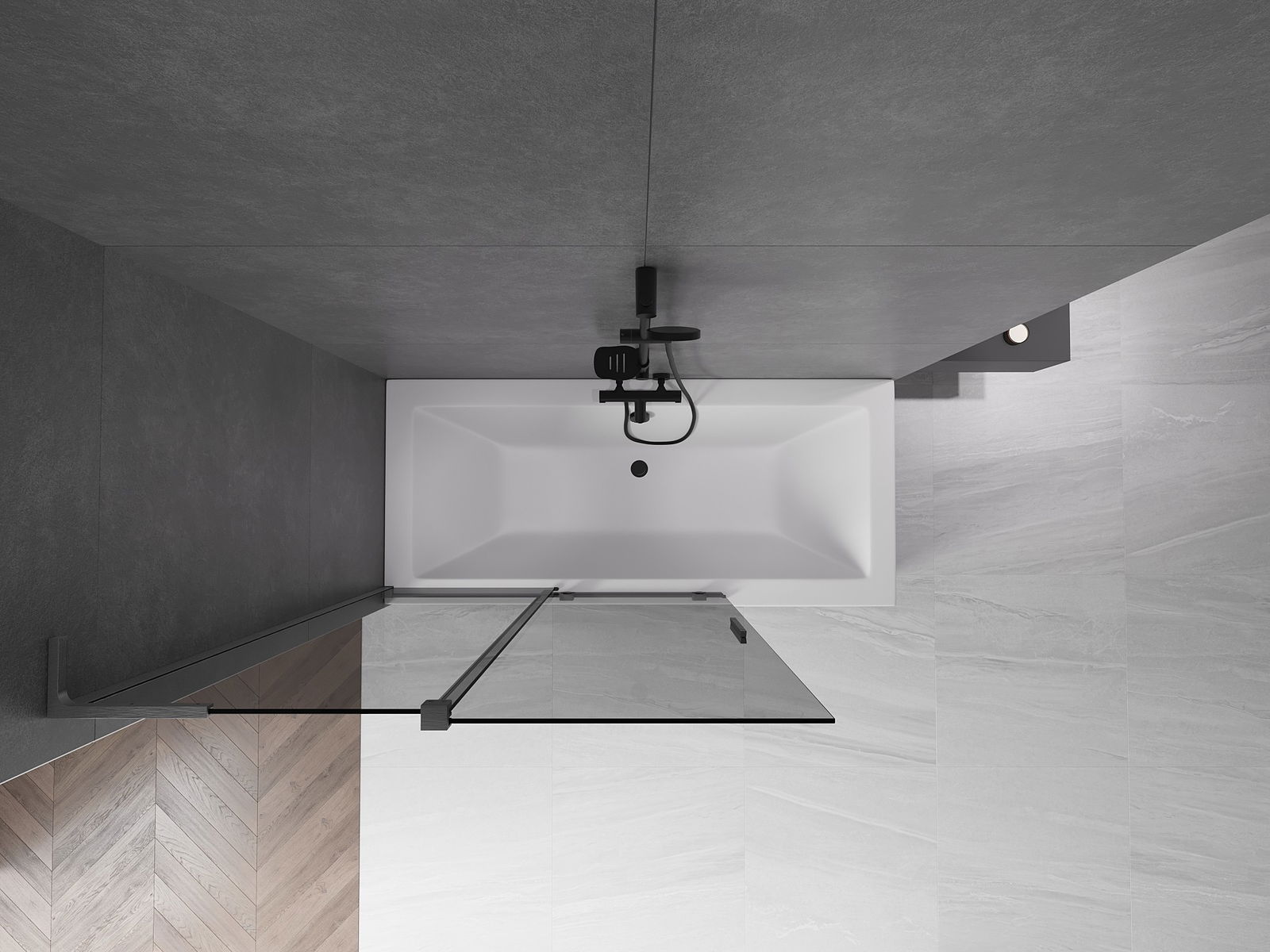 Dank dem universellen Montagesystem kann de Paravent je no Bedierfness op der rietser oder lénkser Säit montéiert ginn. Sou kanns de eng Dusch plangen, déi op de Raum vun der Buedzëmmer ugepasst ass.