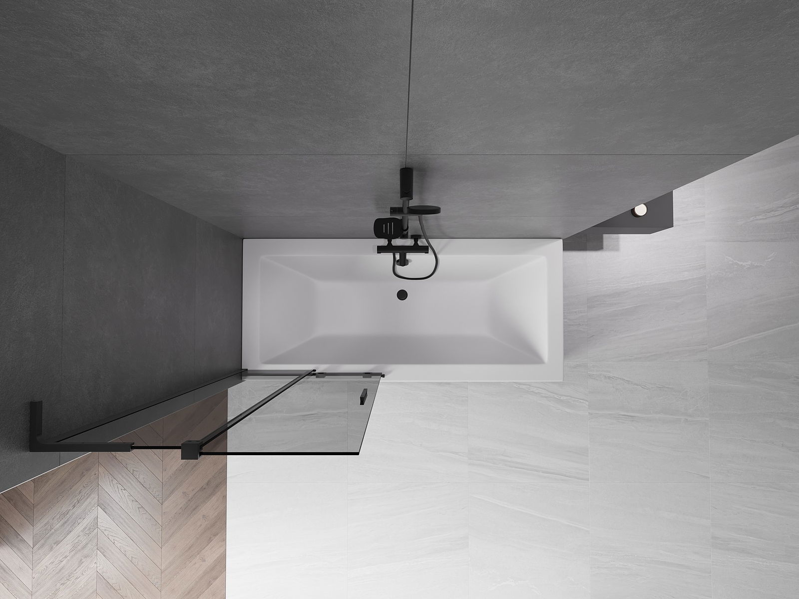Dank dem universellen Montagesystem kann de Paravent je no Bedierfness op der rietser oder lénkser Säit montéiert ginn. Sou kanns de eng Dusch plangen, déi op de Raum vun der Buedzëmmer ugepasst ass.