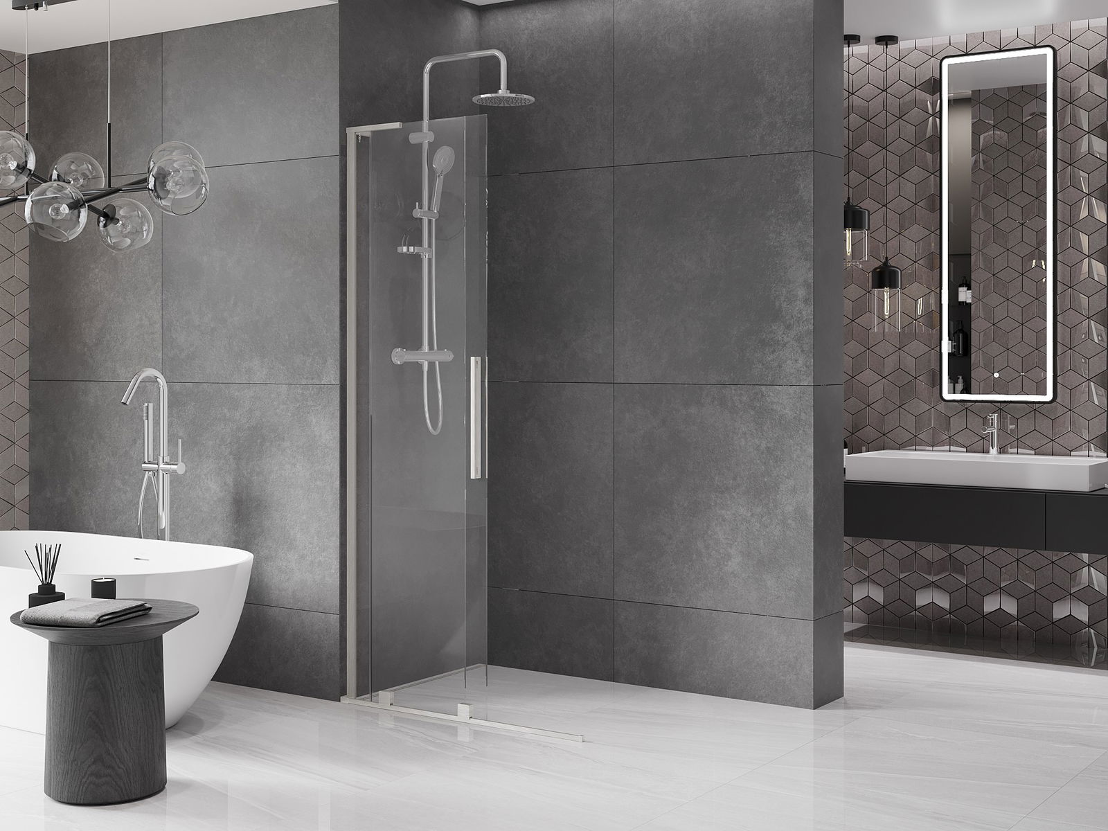 Mexen Velar L schiebare Duschwand Walk-in 110 x 200 cm, transparent 8 mm, gebürsteter Nickel - 871-110-003-03-97