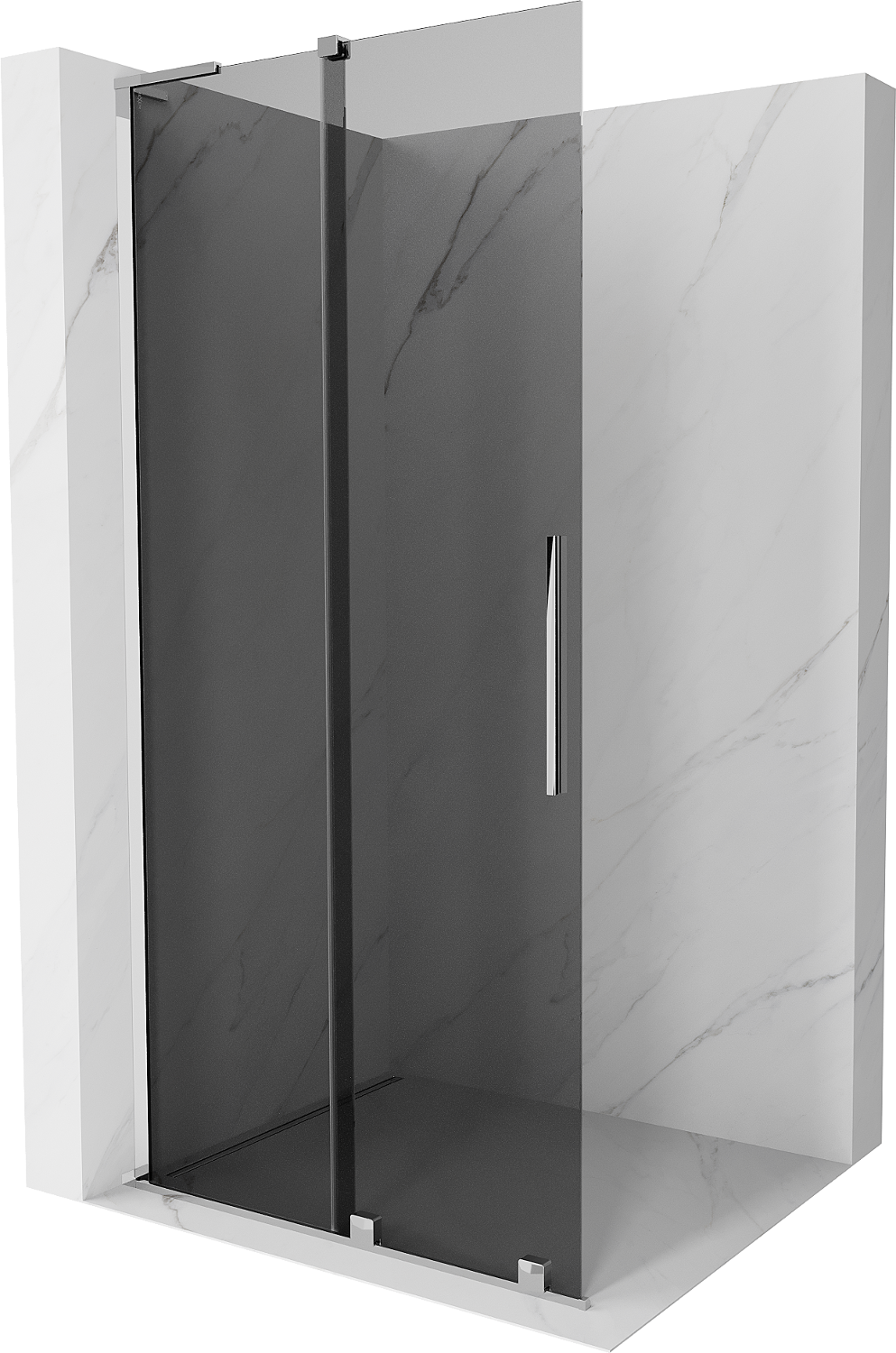Dank dem universelle Montagesystem kënnen d'Duschdieren op der lénker oder op der rietser Säit montéiert ginn, ofhängeg vun de Besoinen. Duerch dëst kënns du de Buedzëmmer-Dusch mat Liichtegkeet un de Raum upassen.
