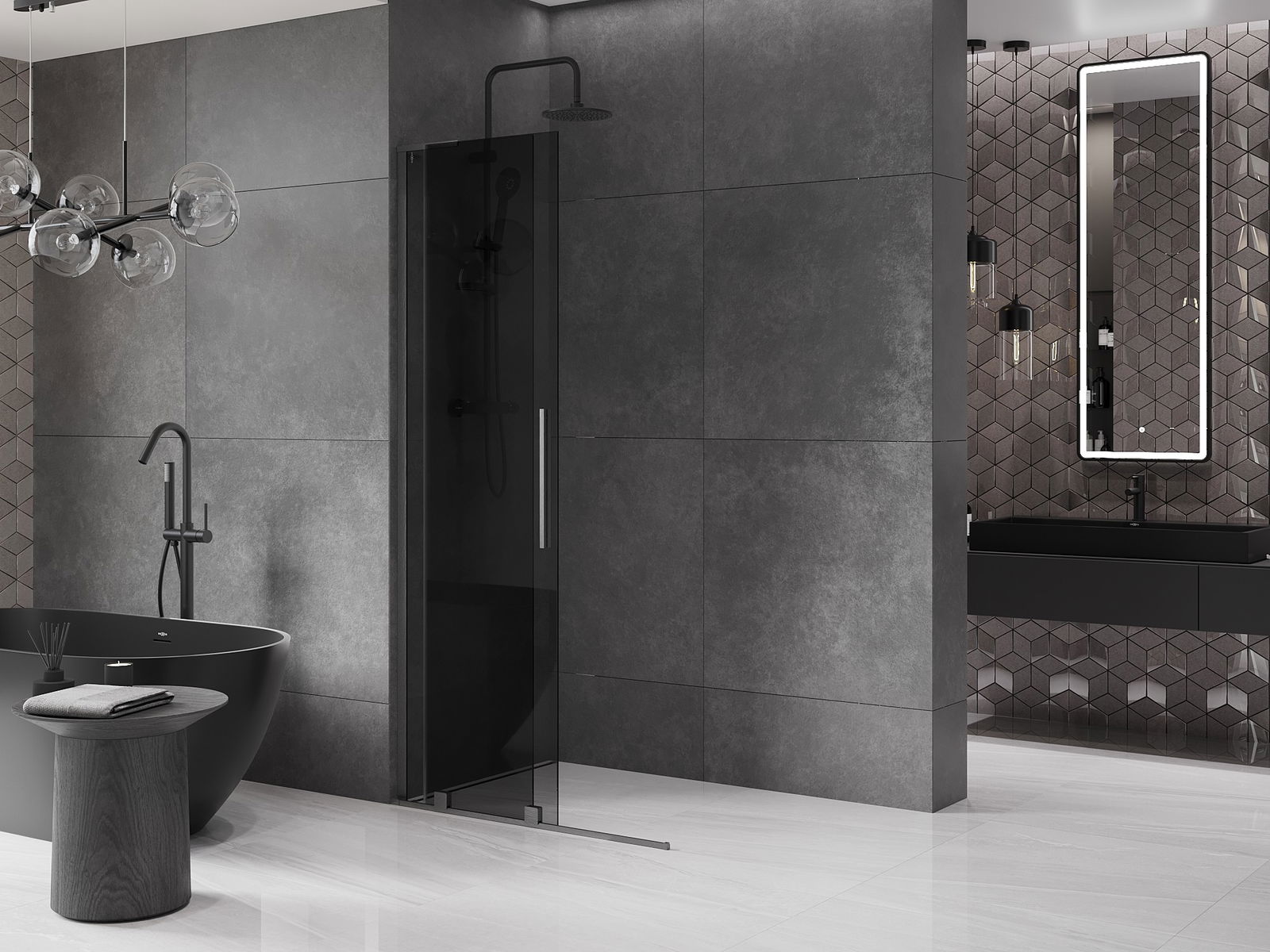En handlecht a komfortabele Grëff ass aus Edelstol gemaach. E modernen Design an enger Ofschloss der Faarf vun de Profiler ugepasst, gëtt et en moderne a stilvolle Look, deen d'Aesthetik vun all Buedzëmmer ervirhieft.