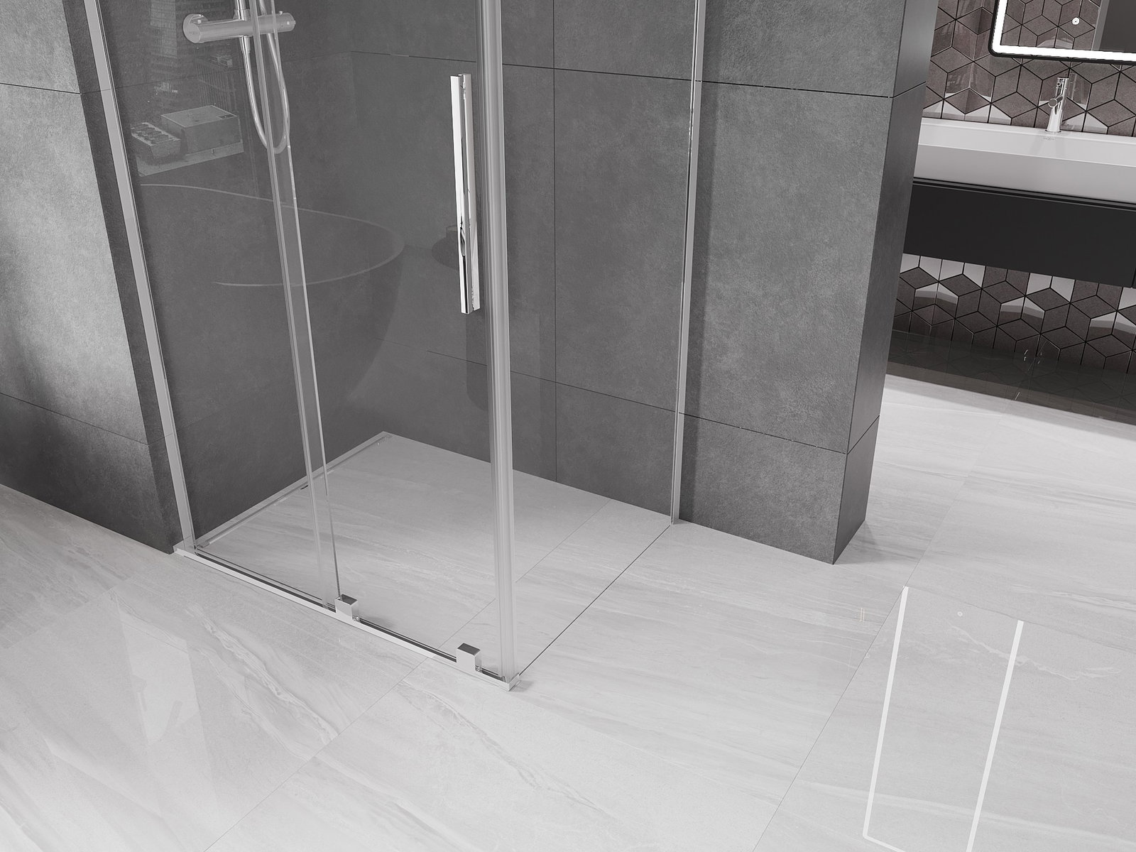 Dank dem universelle Montagesystem kënnen d'Duschdieren op der lénker oder op der rietser Säit montéiert ginn, ofhängeg vun de Besoinen. Duerch dëst kënns du de Buedzëmmer-Dusch mat Liichtegkeet un de Raum upassen.