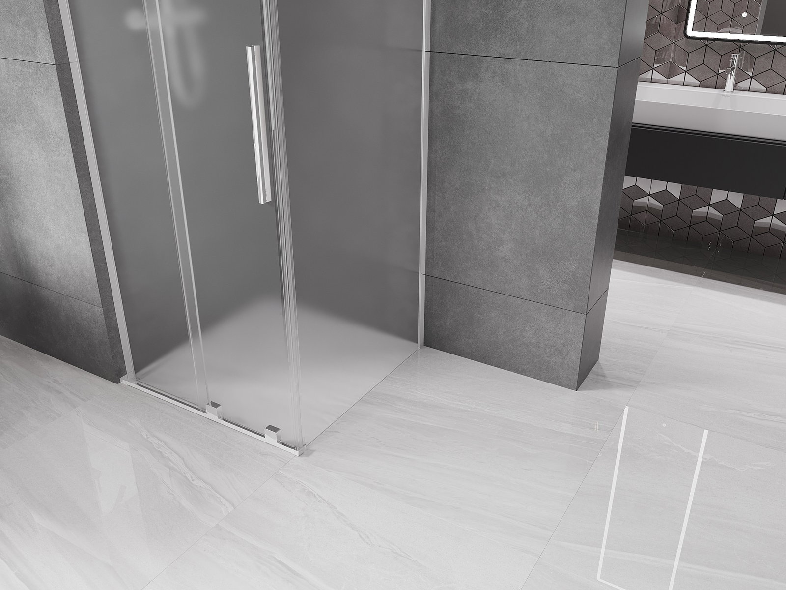 Mexen Velar L Schiebbar Duschkabinn 100 x 100 cm, Givre, Chrom - 871-100-100-33-01