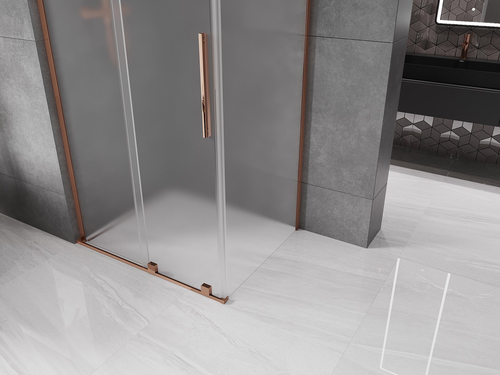 Mexen Velar L schiebbar Duschkabinn 100 x 110 cm, Hoarfrost, rosa Gold - 871-100-110-33-60