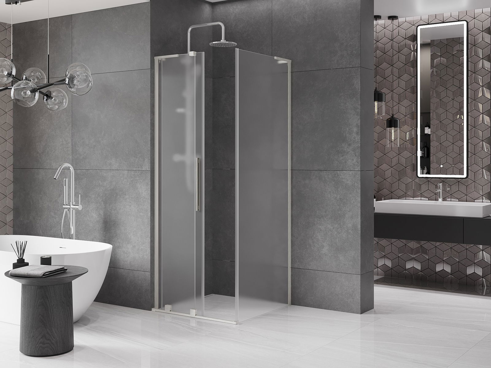 Dank dem universelle Montagesystem kënnen d'Duschdieren op der lénker oder op der rietser Säit montéiert ginn, ofhängeg vun de Besoinen. Duerch dëst kënns du de Buedzëmmer-Dusch mat Liichtegkeet un de Raum upassen.