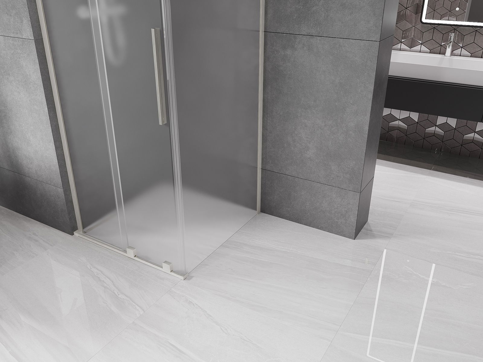 Mexen Velar L rutschbar Duschkabine 110 x 110 cm, Raureif, gebürsteter Nickel - 871-110-110-33-97