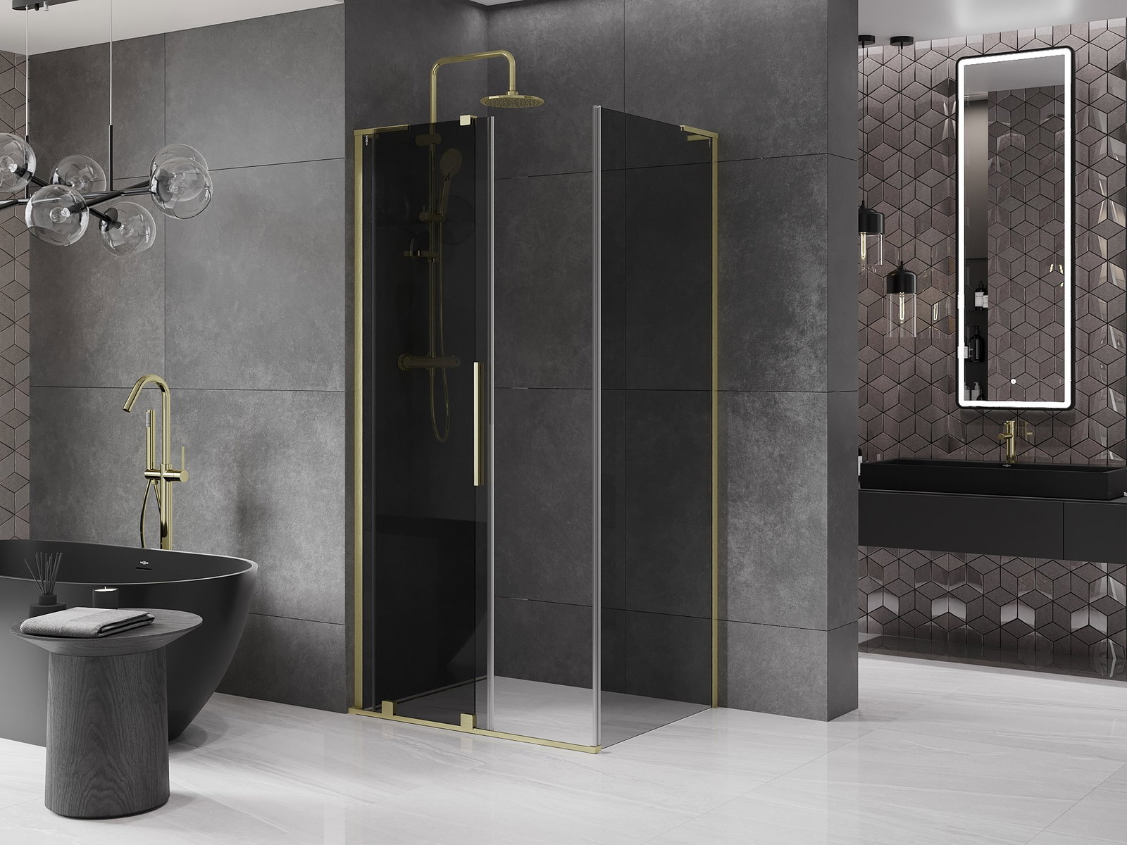 Mexen Velar L schiebbar Duschkabine 90 x 120 cm, Grafit, gebastene Gold - 871-090-120-43-55