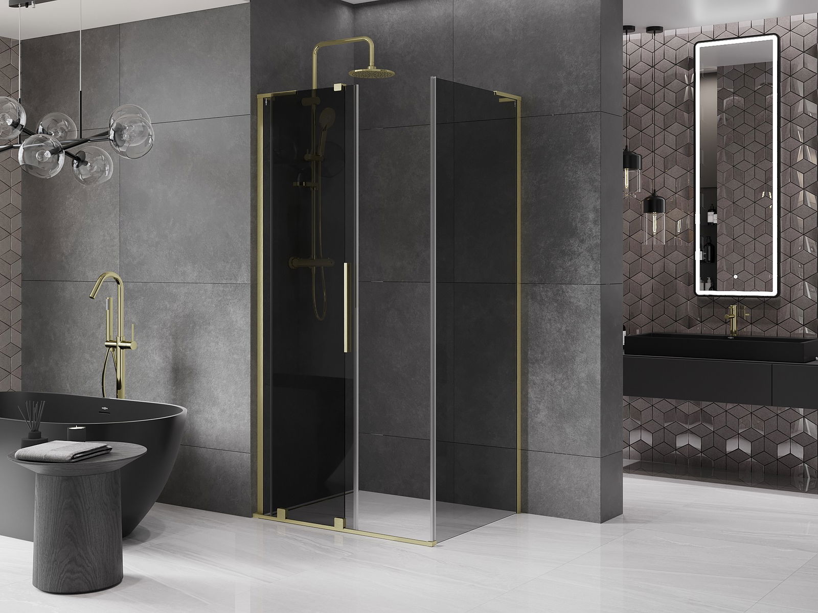 Mexen Velar L Schiebeduschkabine 110 x 75 cm, Grafit, gebürstetes Gold - 871-110-075-43-55