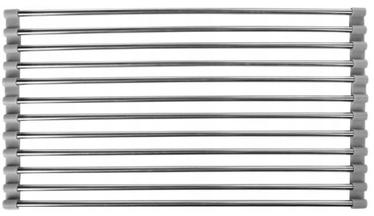 En universellen Offluss an der Form vun enger oprullbarer Matte ass eng praktesch a funktionell Léisung, déi an all Kichen gutt funktionéiert. D'Méiglechkeet fir ze schneiden erlaabt d'Dimensiounen un individuell Bedierfnesser unzepassen an un all Kaméidi.