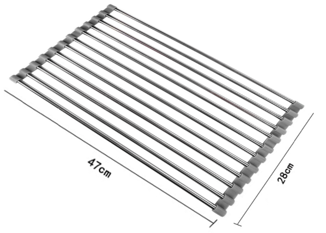Den Oflaafrack ass extrem einfach ze späicheren – wann en net gebraucht gëtt, kann en einfach gerullt ginn. Op dës Manéier hëlt en zesummegeklappt wéineg Plaz an a passt souguer an eng kleng Schaf oder Tirang. Ideal Léisung fir kleng Kichen.