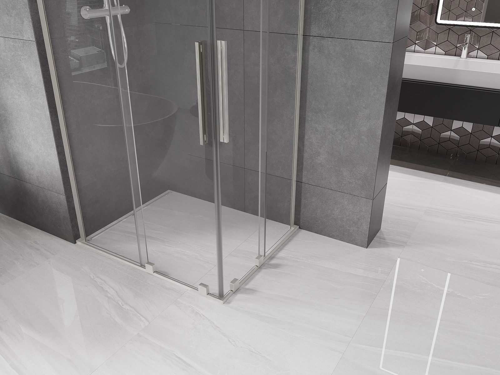 Mexen Velar L Duo Schiebeduschkabine 100 x 90 cm, transparent, gebürsteter Nickel - 871-100-090-02-03-97