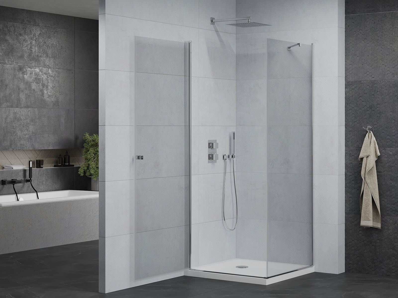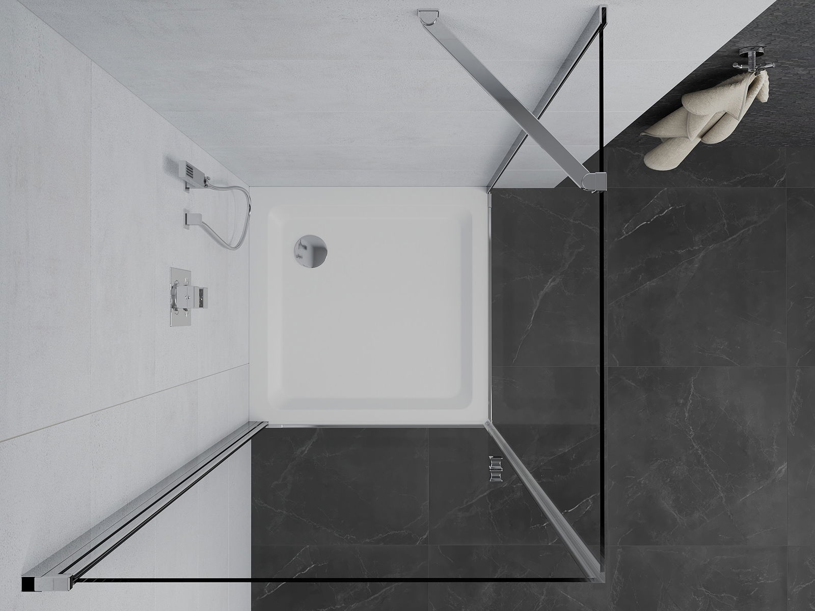 Dank dem universelle Montagesystem kënnen d'Duschdieren op der lénker oder op der rietser Säit montéiert ginn, ofhängeg vun de Besoinen. Duerch dëst kënns du de Buedzëmmer-Dusch mat Liichtegkeet un de Raum upassen.