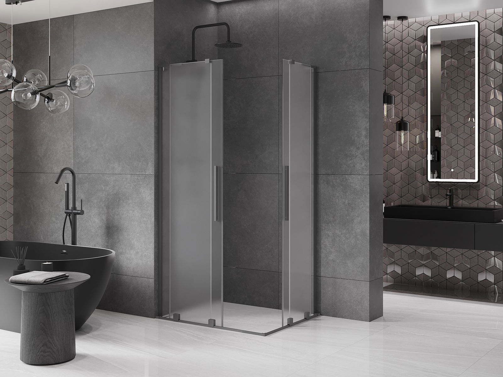 Mexen Velar L Duo Schiebeduschkabinn 90 x 80 cm, Schnei, Gewierpelt Metalla - 871-090-080-02-33-95