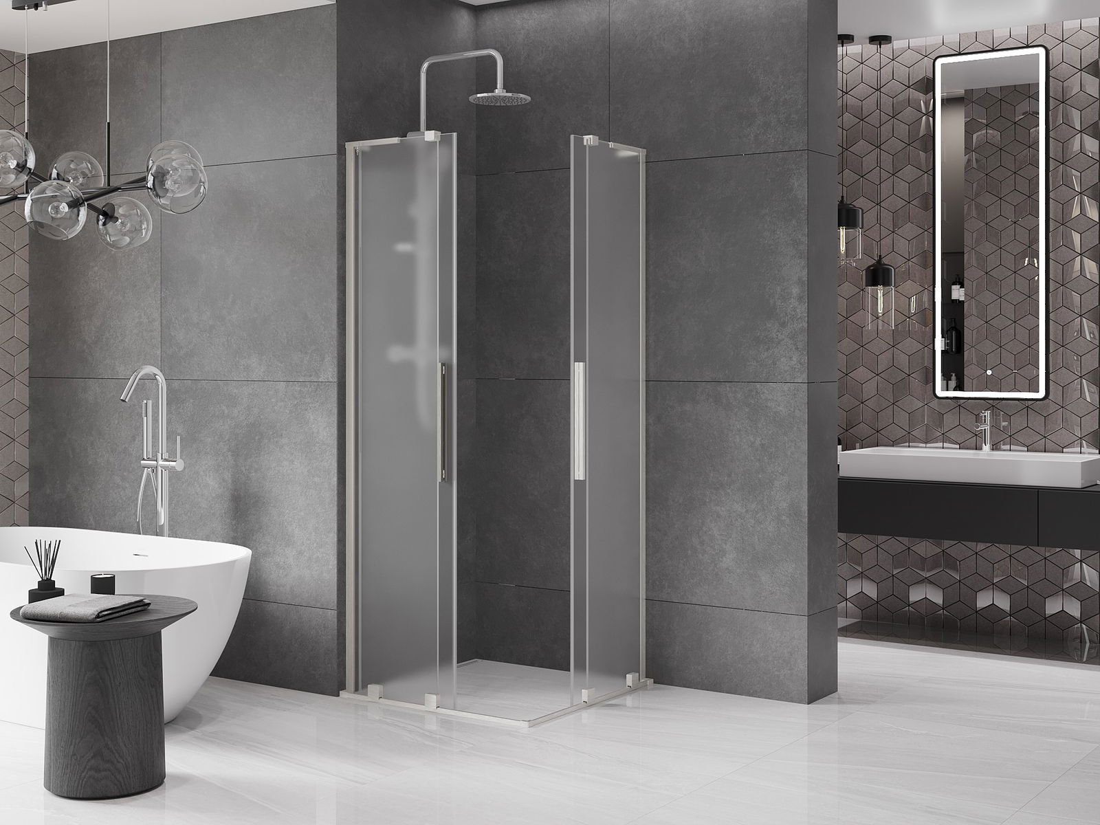 Mexen Velar L Duo schiebbar Duschkabine 90 x 90 cm, Frost, gebürsteter Nickel - 871-090-090-02-33-97