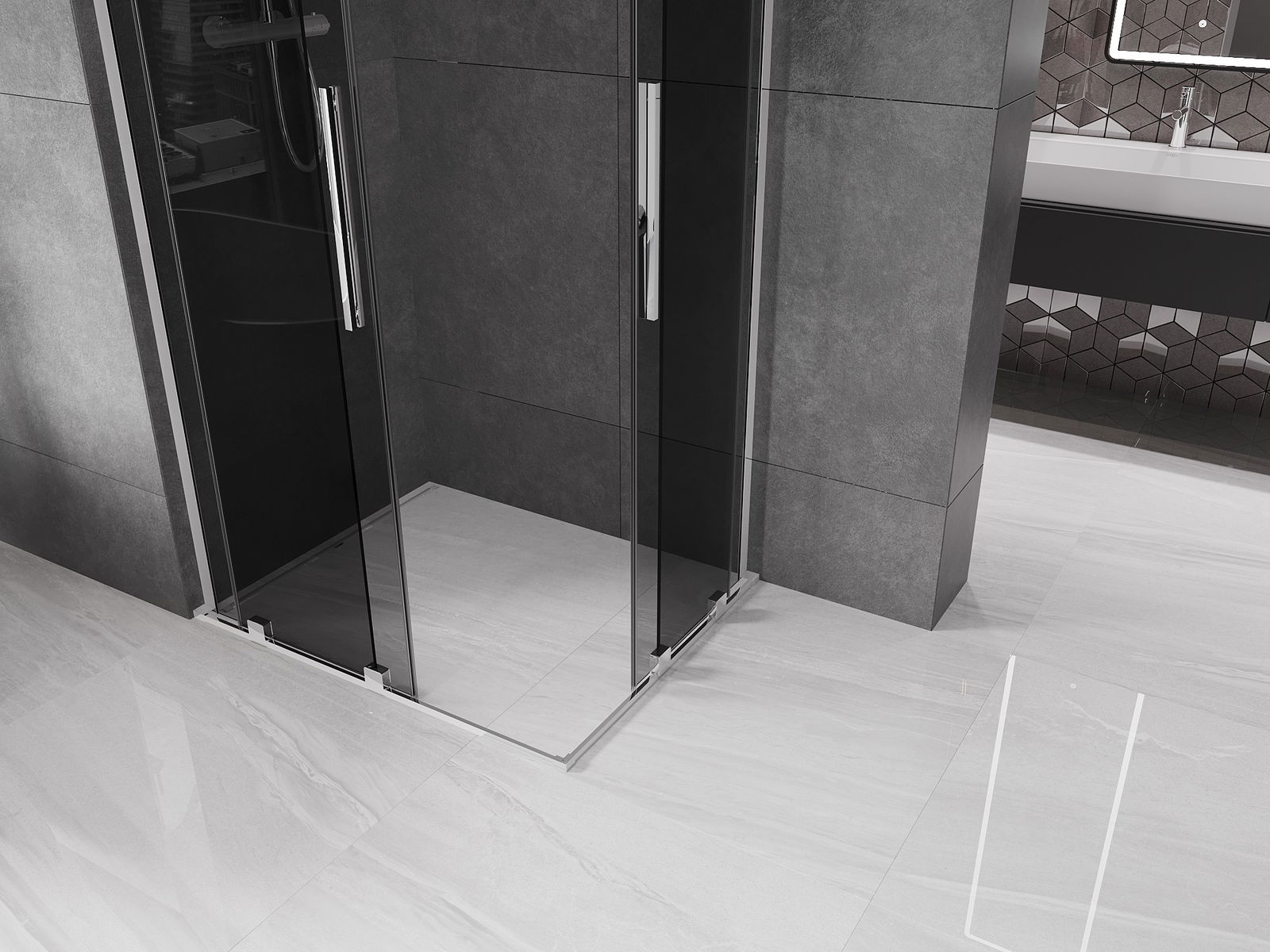 Mexen Velar L Duo rutschend Duschkabine 90 x 80 cm, Grafit, Chrom - 871-090-080-02-43-01