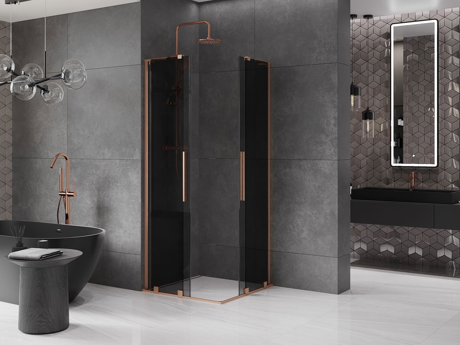 Mexen Velar L Duo verréckelbar Duschkabinn 90 x 90 cm, Grafit, gebastete Koffer - 871-090-090-02-43-65