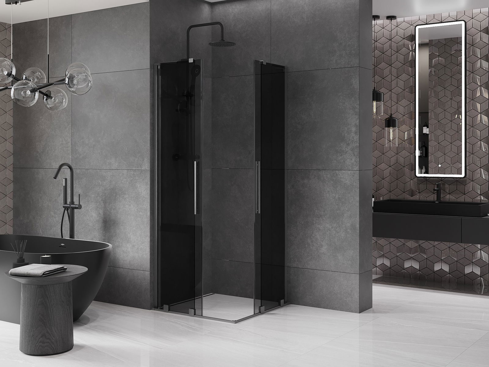 En handlecht a komfortabele Grëff ass aus Edelstol gemaach. E modernen Design an enger Ofschloss der Faarf vun de Profiler ugepasst, gëtt et en moderne a stilvolle Look, deen d'Aesthetik vun all Buedzëmmer ervirhieft.