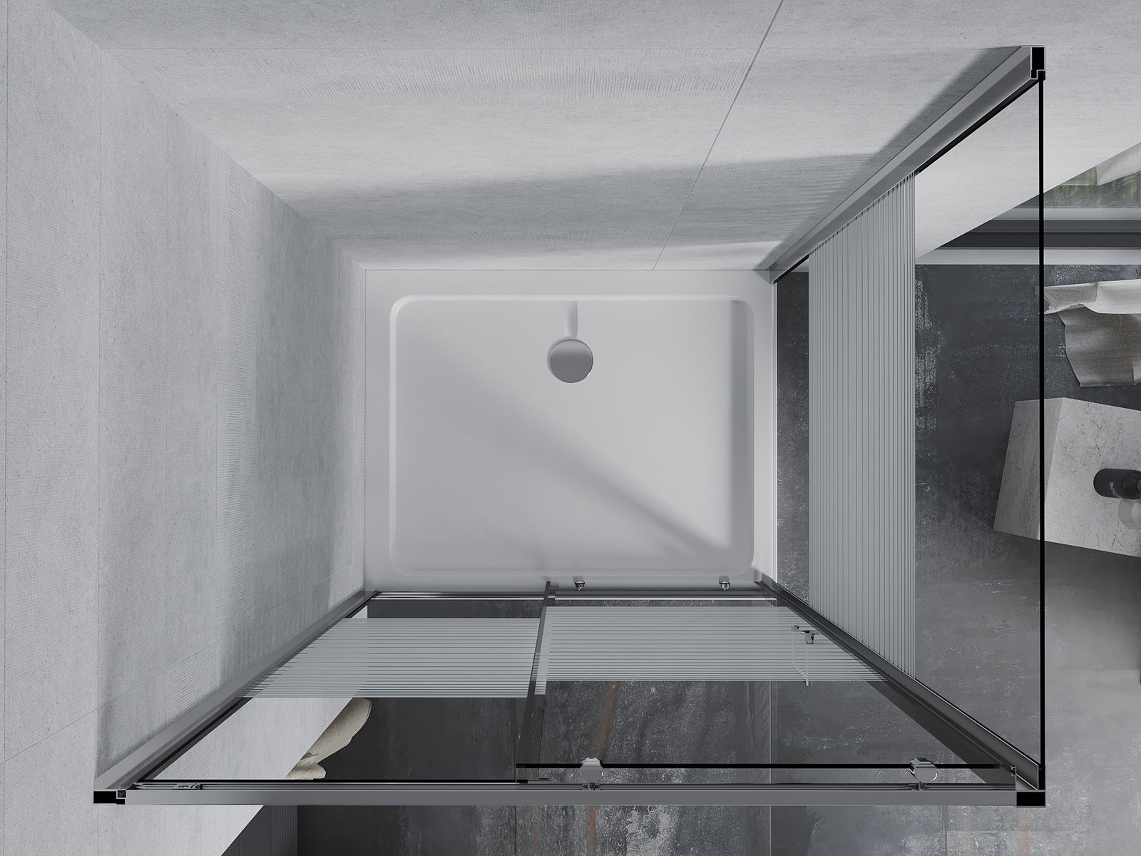 Mexen Apia rietschtausch Kabinn 90 x 70 cm, wäiss Sträifen, Chrom + Flat Dusche - 840-090-070-01-20-4010