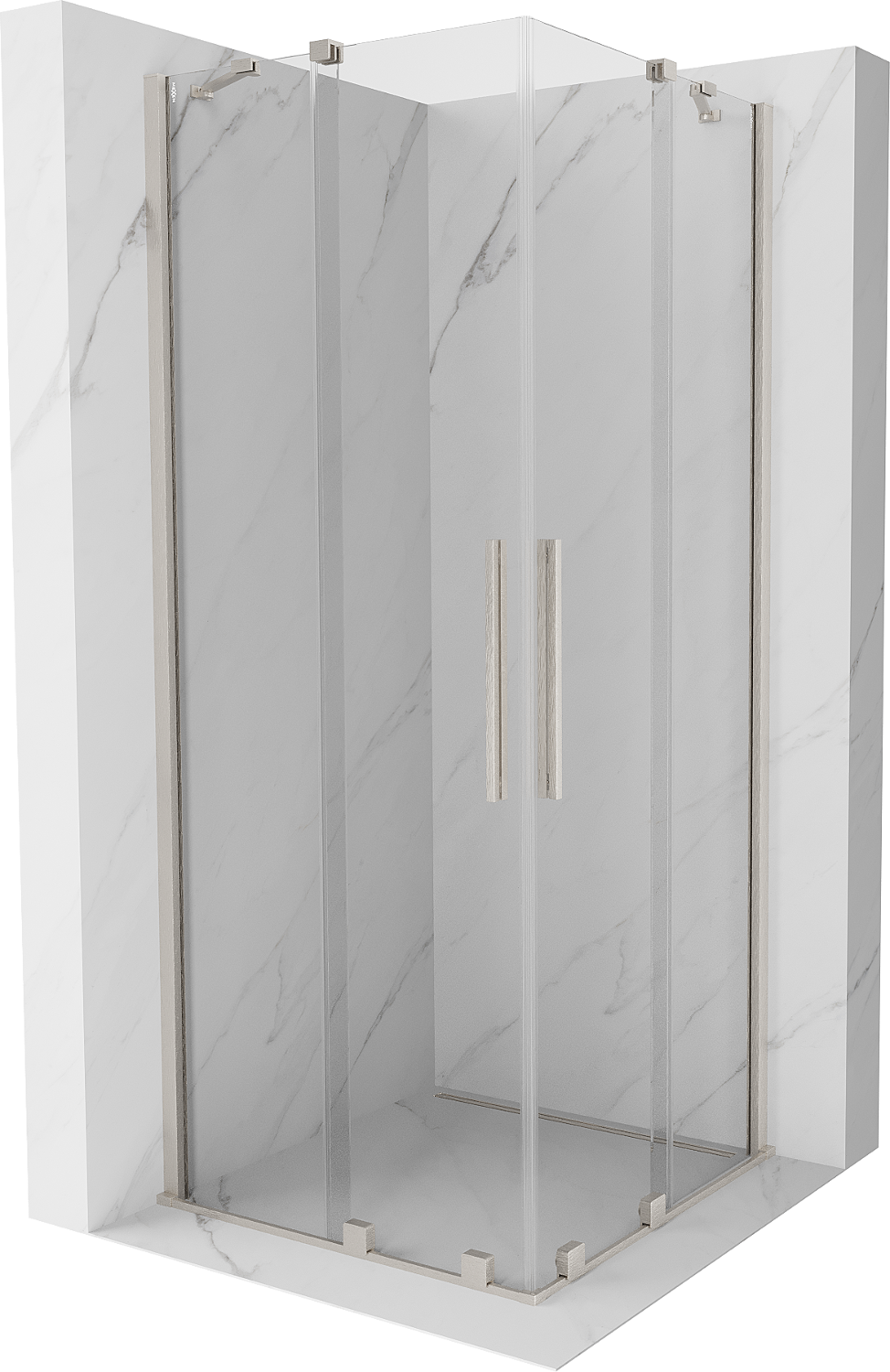 Mexen Velar Dueb Kabinnendusch mat Schiebetüren 100 x 100 cm, transparent, gebürsteten Nickel - 871-100-100-02-97