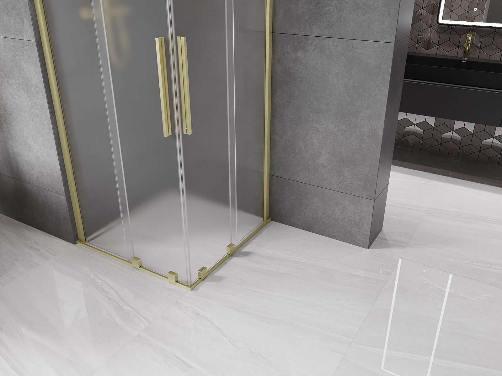 Mexen Velar Duo rutschduschkabinn 100 x 100 cm, Mat, gebürsteten Gold - 871-100-100-32-55