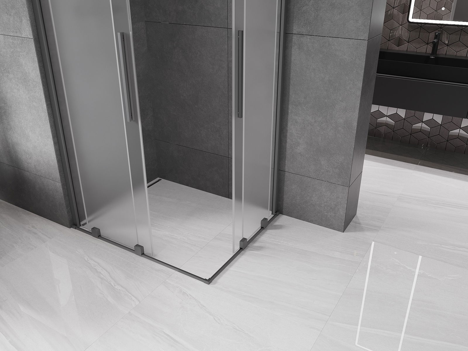 Mexen Velar Duo rutsche Duschkabinn 100 x 90 cm, matte, Gun Metal - 871-100-090-32-95