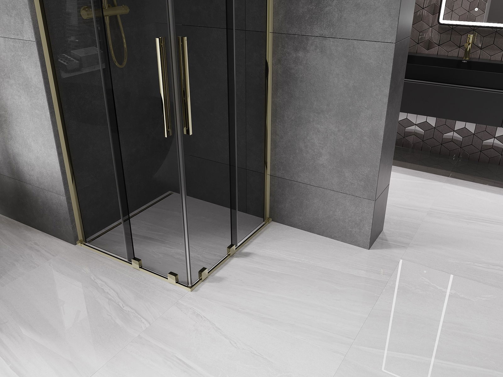 Mexen Velar Duo schwiewend Duschkabinn 80 x 80 cm, Grafit, gëllen - 871-080-080-42-50