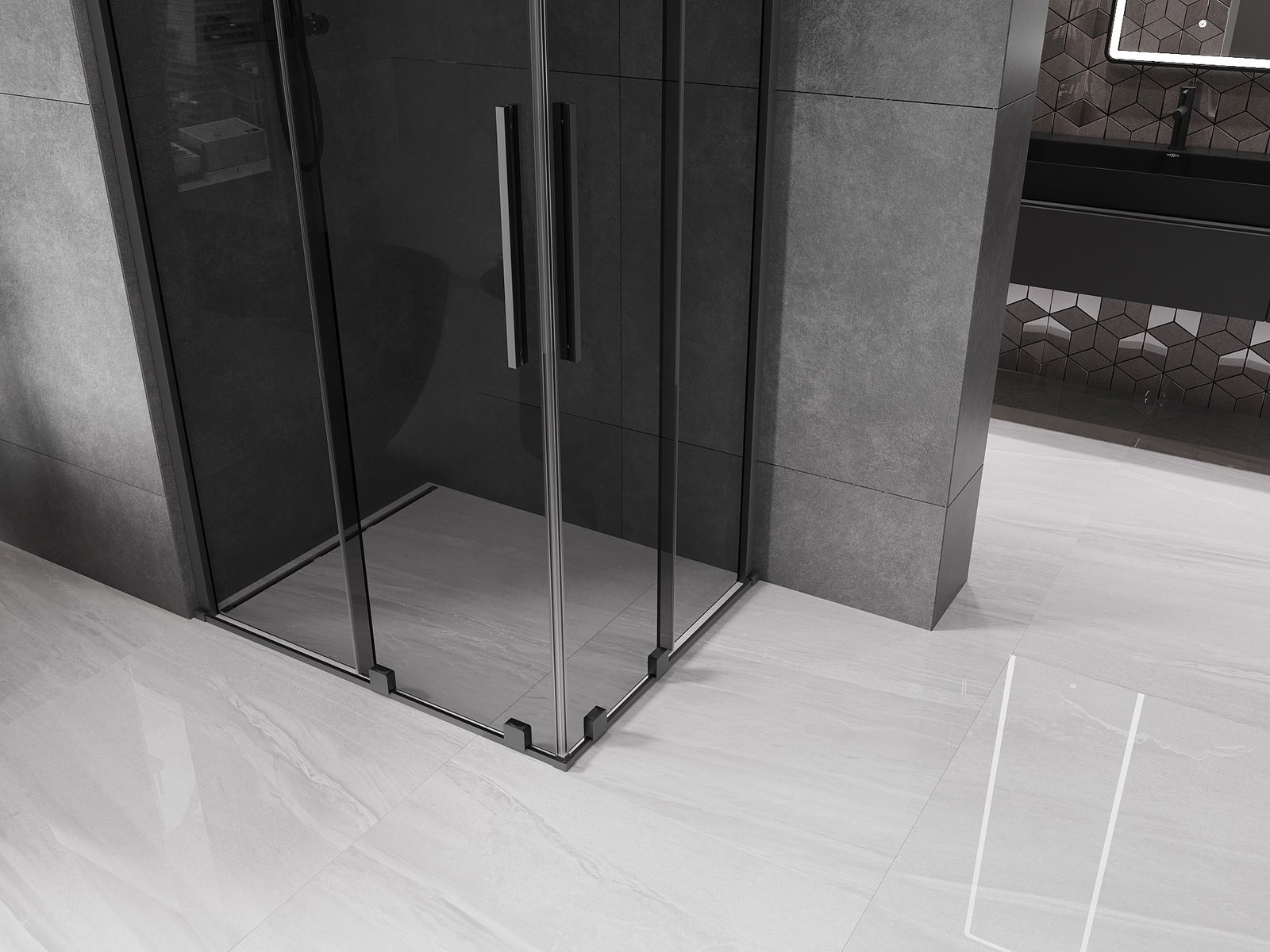 Mexen Velar Duebel Rutsch-Duschkabinn 100 x 90 cm, Grafit, Kanounemetall - 871-100-090-42-95