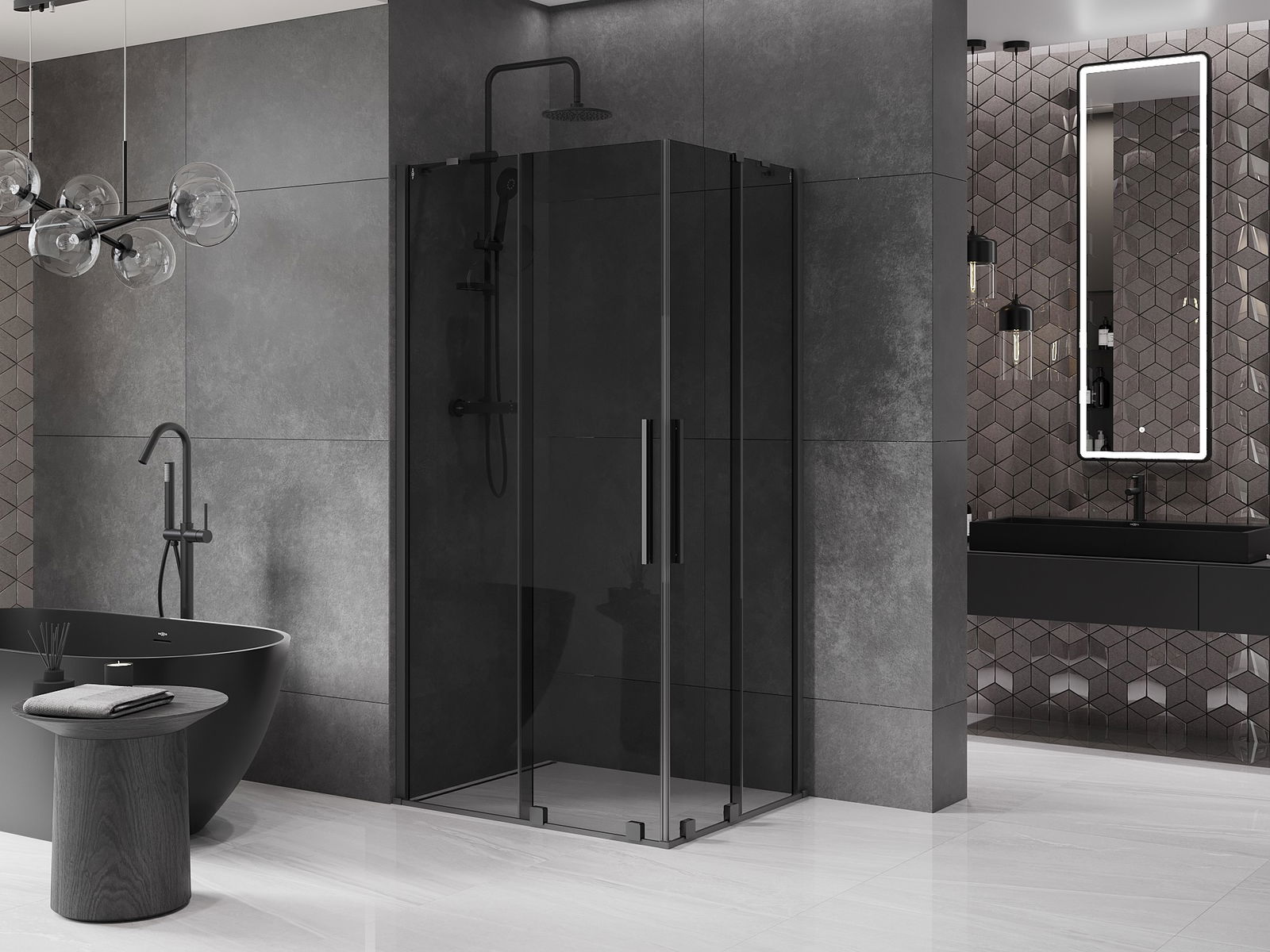 En handlecht a komfortabele Grëff ass aus Edelstol gemaach. E modernen Design an enger Ofschloss der Faarf vun de Profiler ugepasst, gëtt et en moderne a stilvolle Look, deen d'Aesthetik vun all Buedzëmmer ervirhieft.