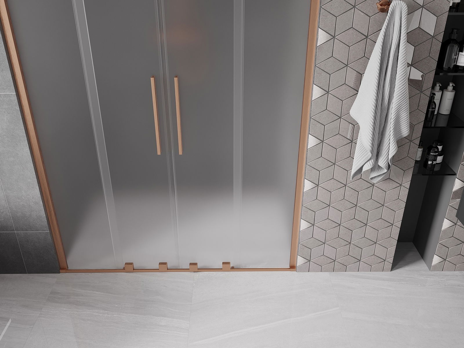 En handlecht a komfortabele Grëff ass aus Edelstol gemaach. E modernen Design an enger Ofschloss der Faarf vun de Profiler ugepasst, gëtt et en moderne a stilvolle Look, deen d'Aesthetik vun all Buedzëmmer ervirhieft.