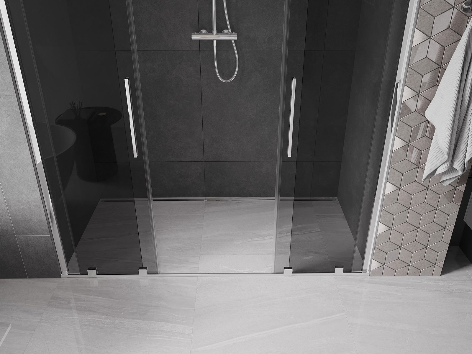 Mexen Velar Duo Schiebduschtüren 200 cm, Grafit, Chrom - 871-200-000-42-01