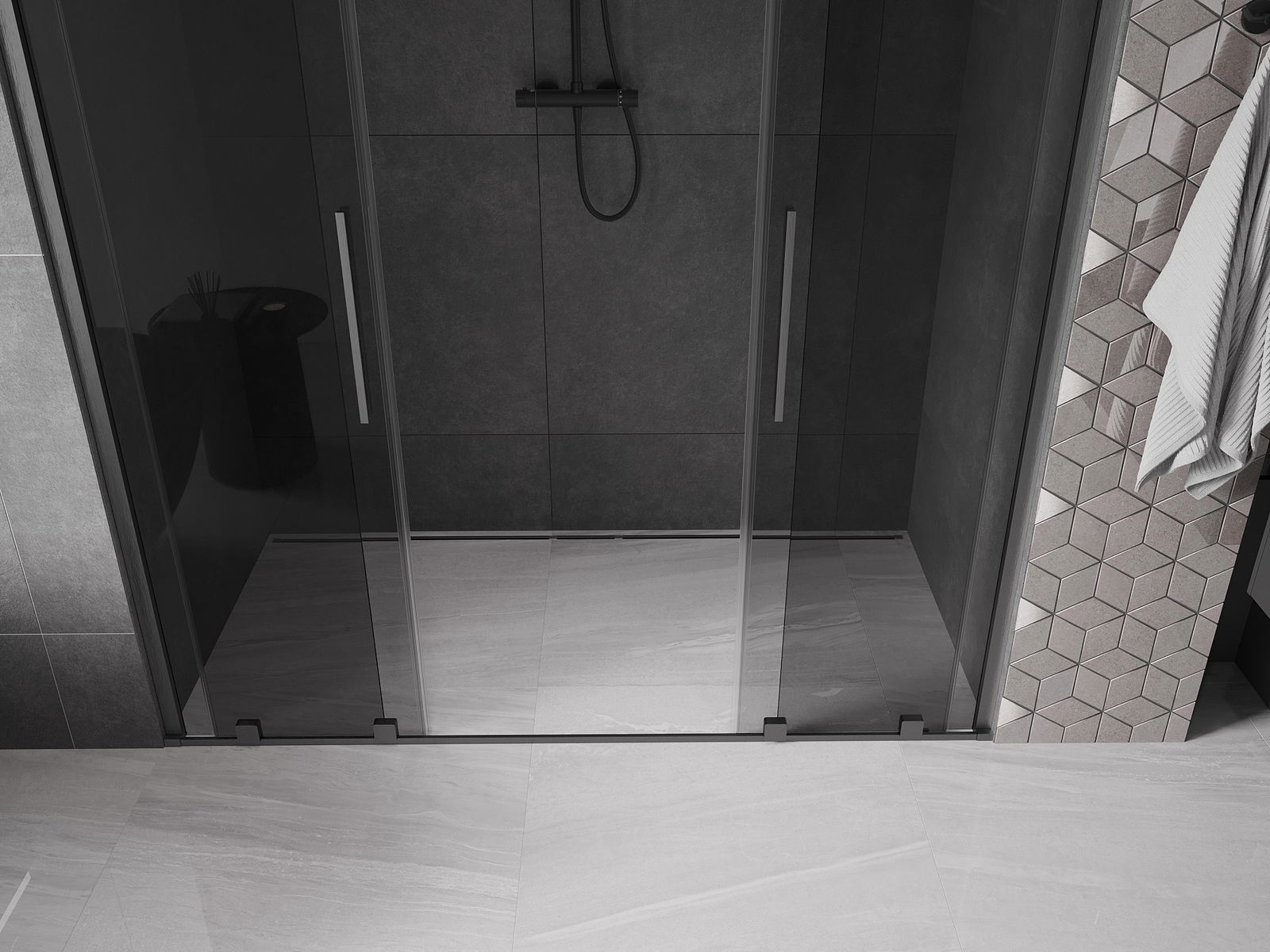 En handlecht a komfortabele Grëff ass aus Edelstol gemaach. E modernen Design an enger Ofschloss der Faarf vun de Profiler ugepasst, gëtt et en moderne a stilvolle Look, deen d'Aesthetik vun all Buedzëmmer ervirhieft.