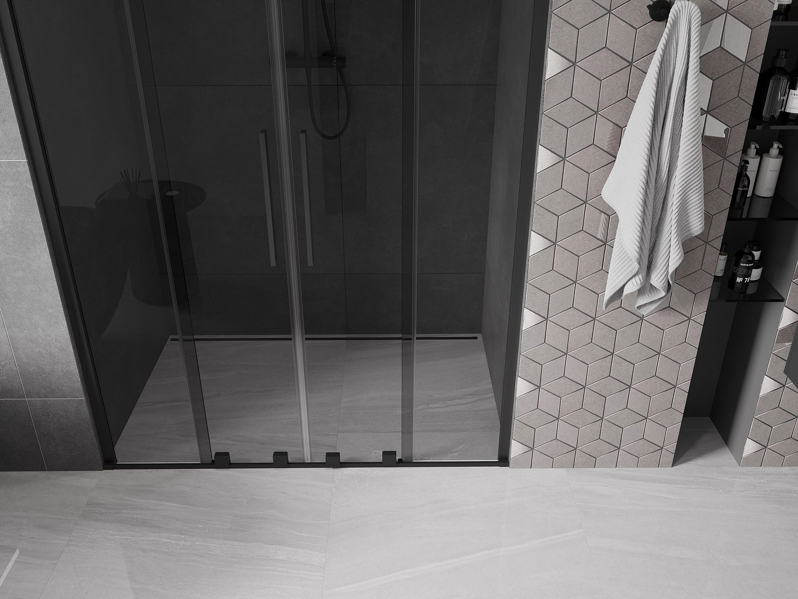 Mexen Velar Duo Rutschdier fir Dusch 140 cm, Grafit, Schwaarz - 871-140-000-42-70