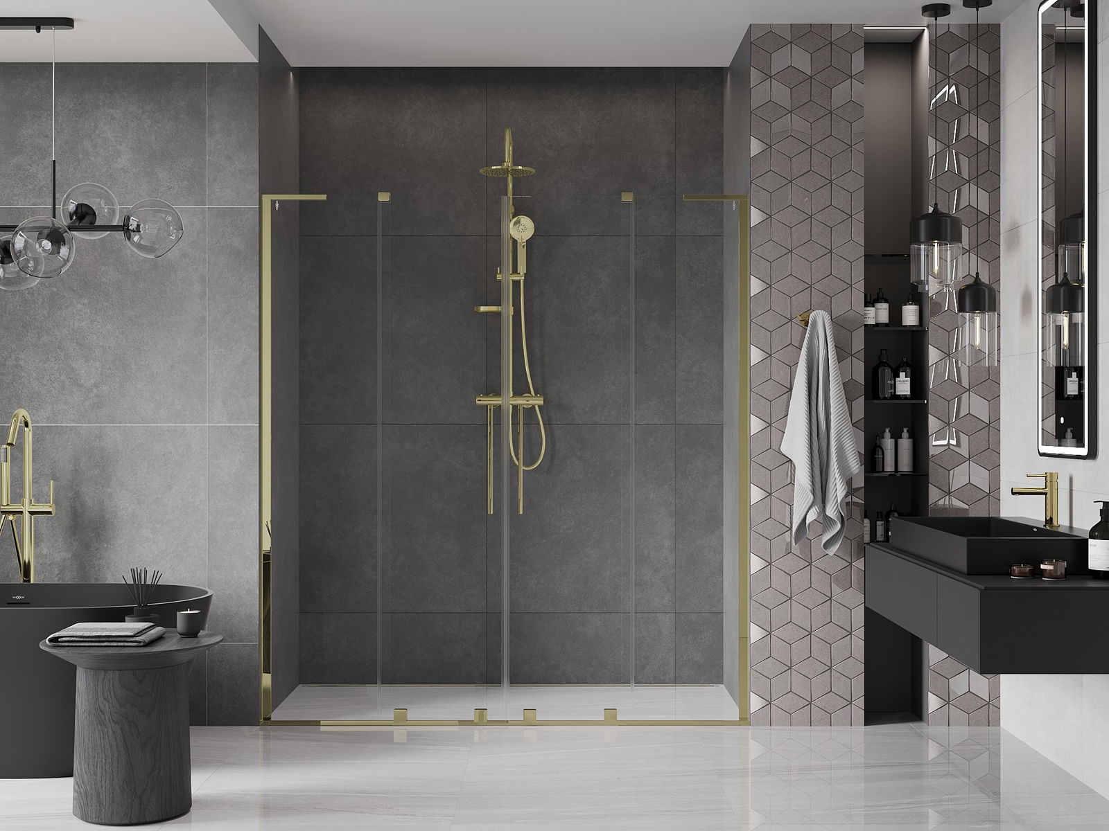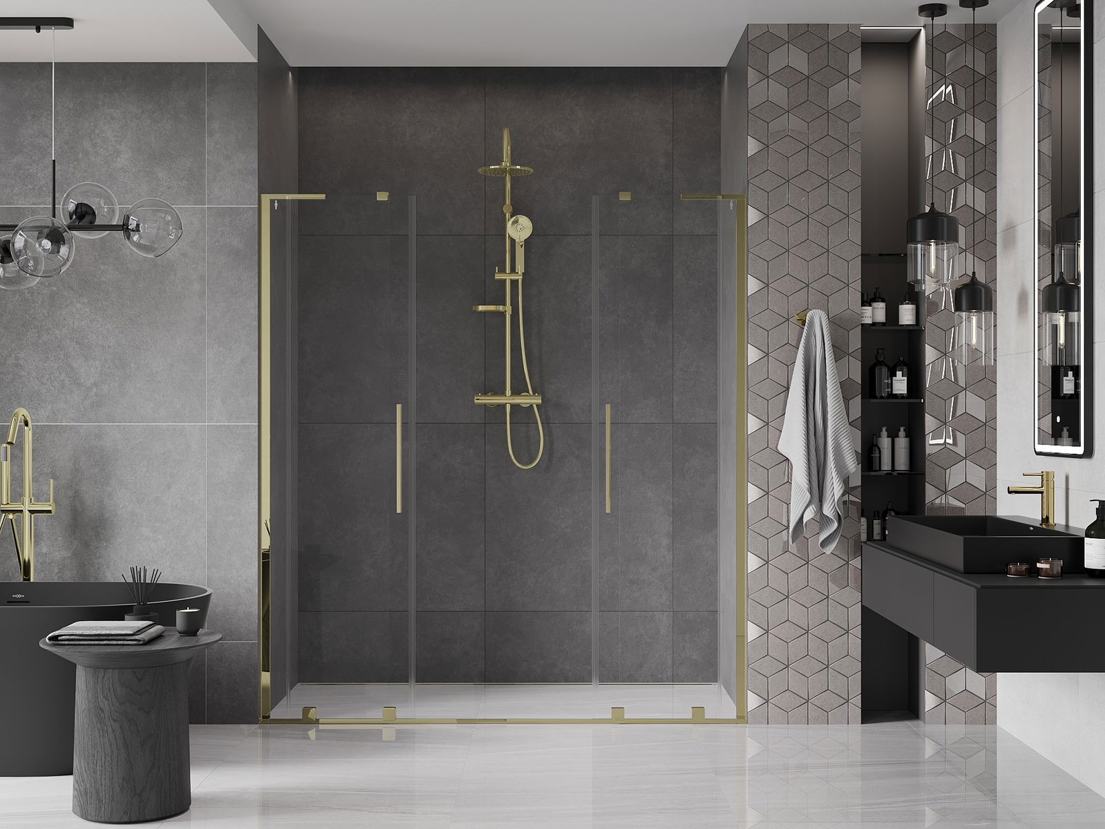 En handlecht a komfortabele Grëff ass aus Edelstol gemaach. E modernen Design an enger Ofschloss der Faarf vun de Profiler ugepasst, gëtt et en moderne a stilvolle Look, deen d'Aesthetik vun all Buedzëmmer ervirhieft.