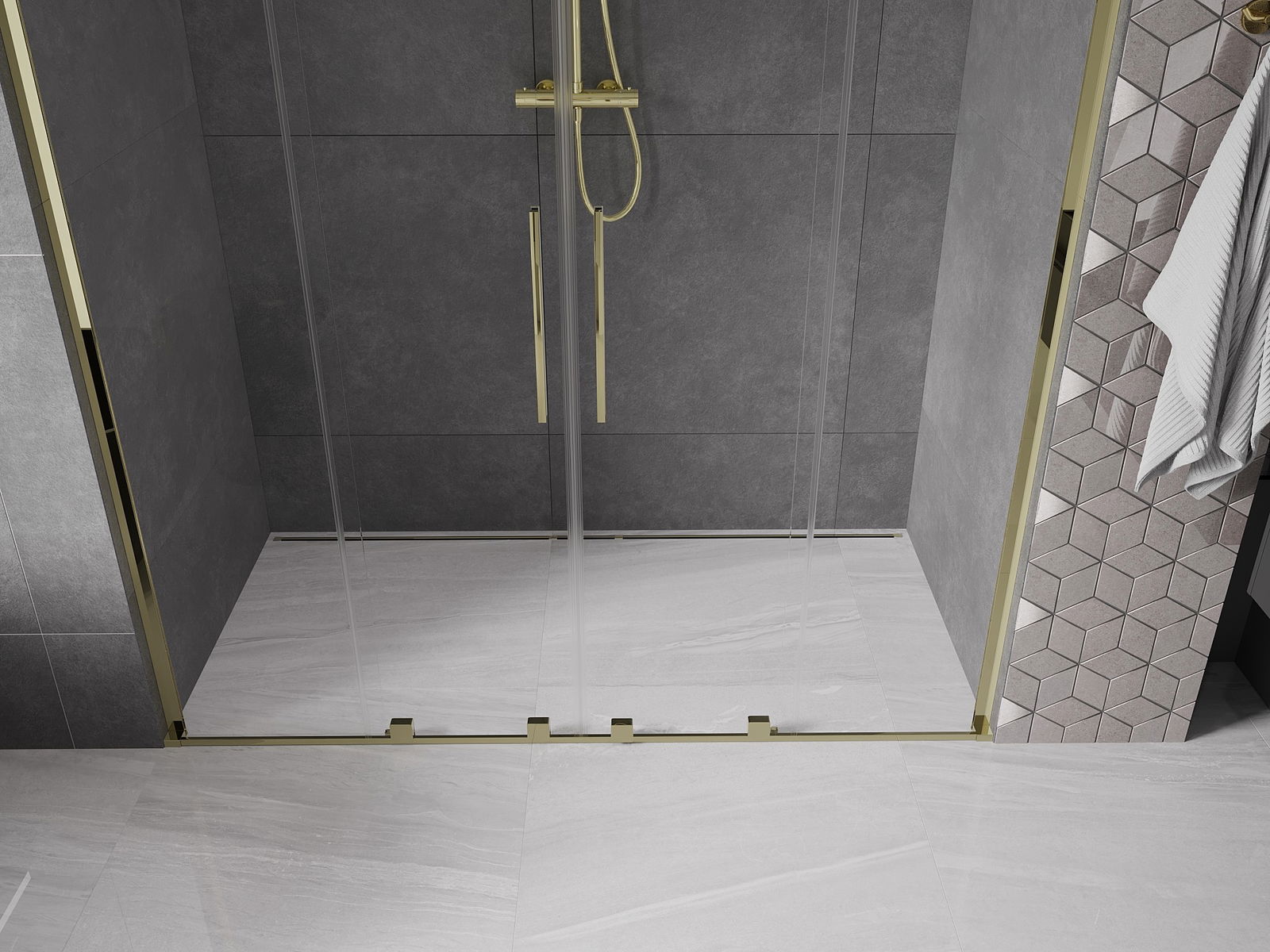 Mexen Velar L Duo rutschsécher Duschdier 200 cm, transparent, gëllen - 871-200-003-02-50