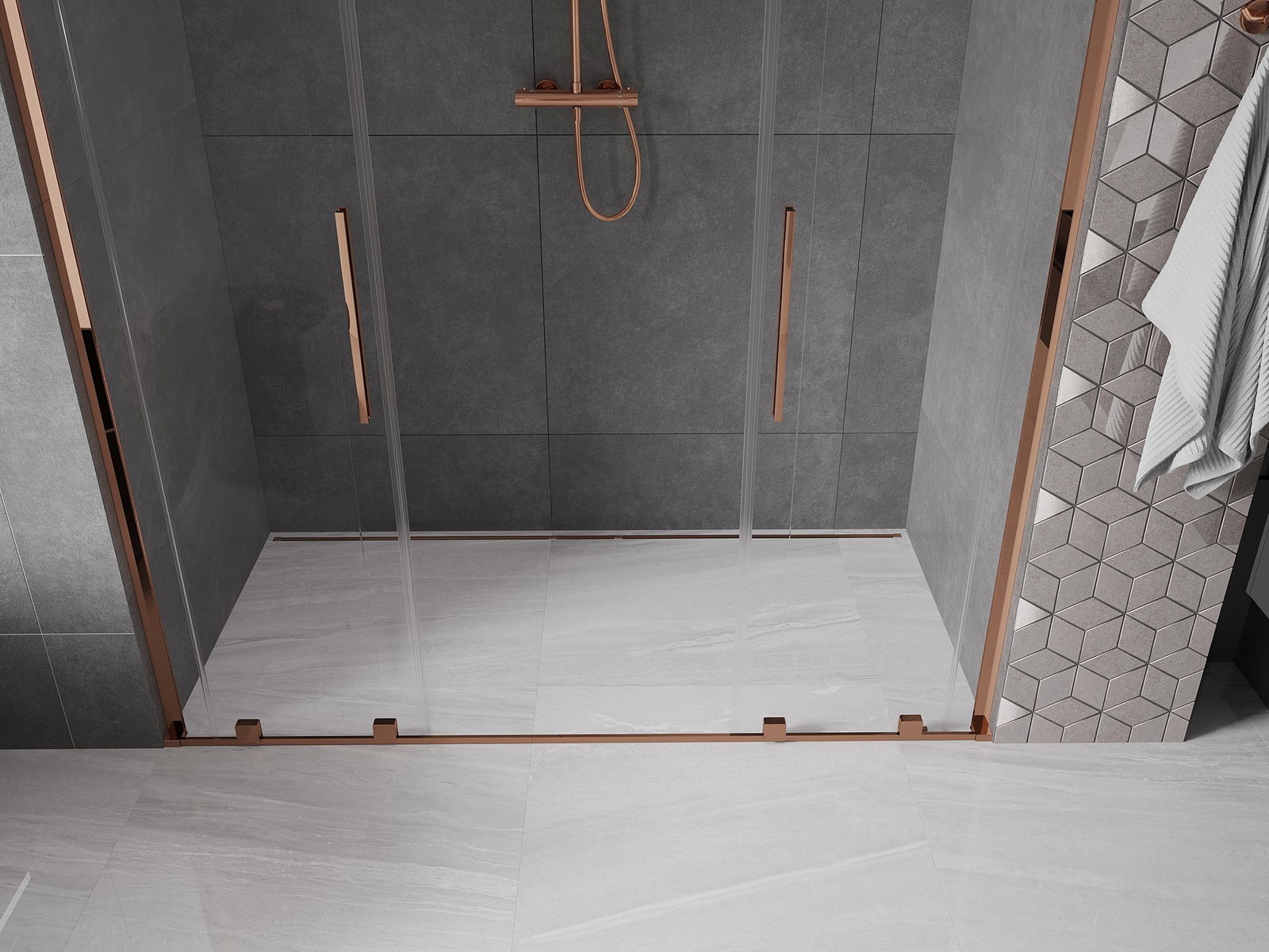 Mexen Velar L Duo Schiifdierfer Duschdier 170 cm, transparent, rosa Gold - 871-170-003-02-60