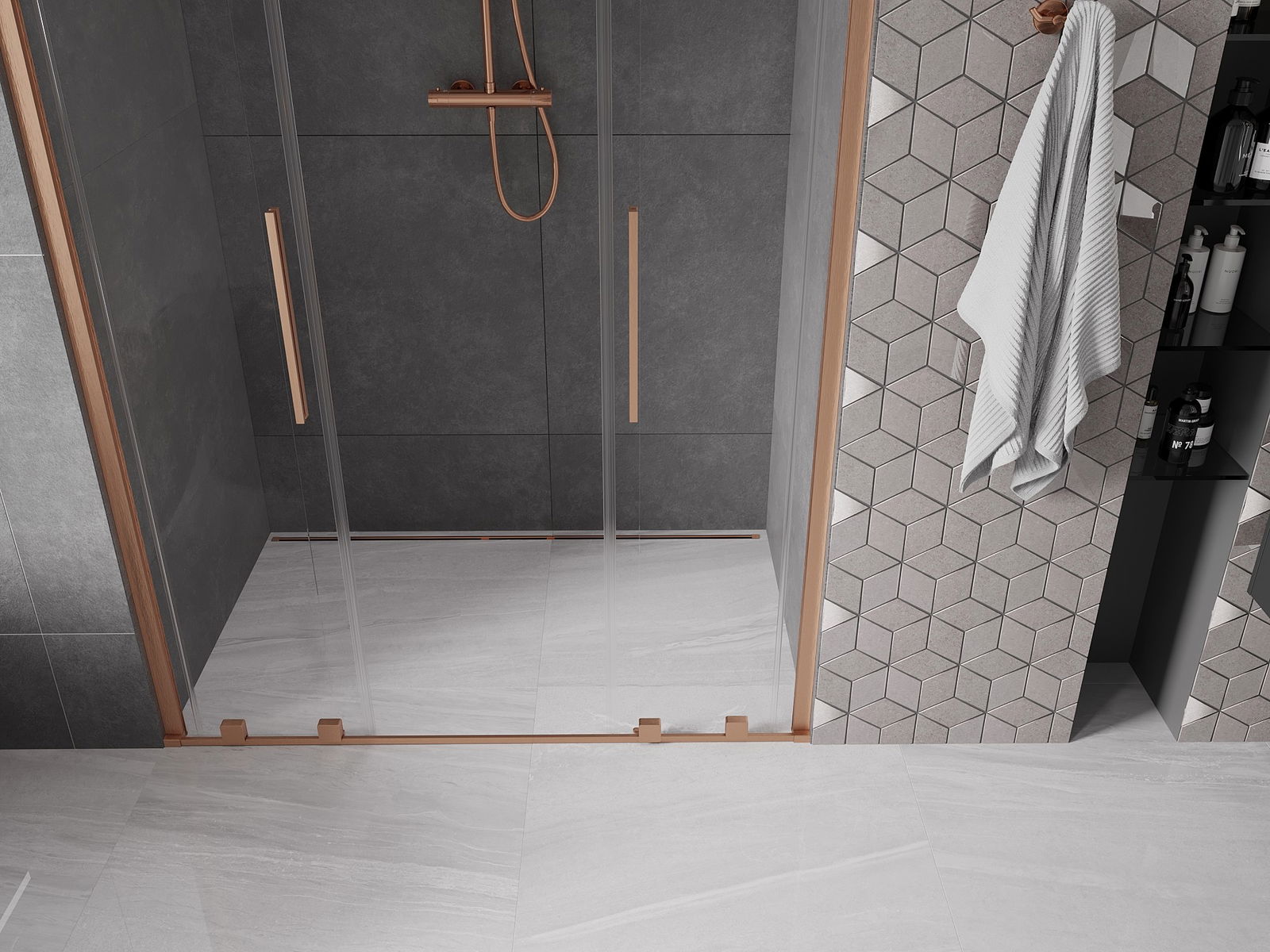 Mexen Velar L Duo Rutschdierduschdier 140 cm, transparent, Broschtkupfer - 871-140-003-02-65