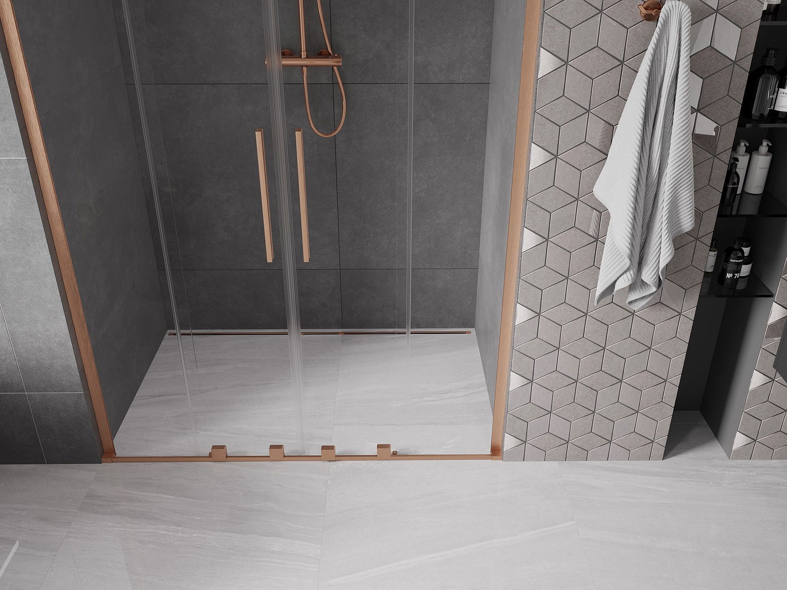 En handlecht a komfortabele Grëff ass aus Edelstol gemaach. E modernen Design an enger Ofschloss der Faarf vun de Profiler ugepasst, gëtt et en moderne a stilvolle Look, deen d'Aesthetik vun all Buedzëmmer ervirhieft.