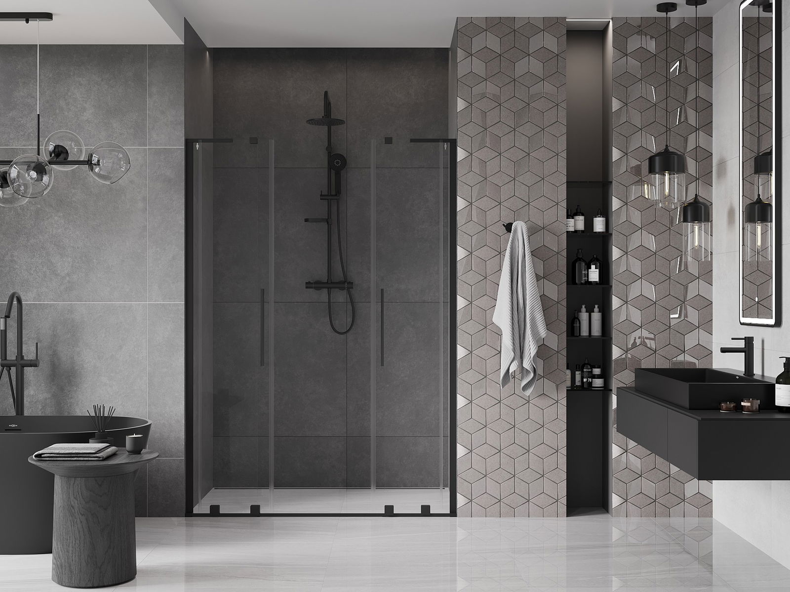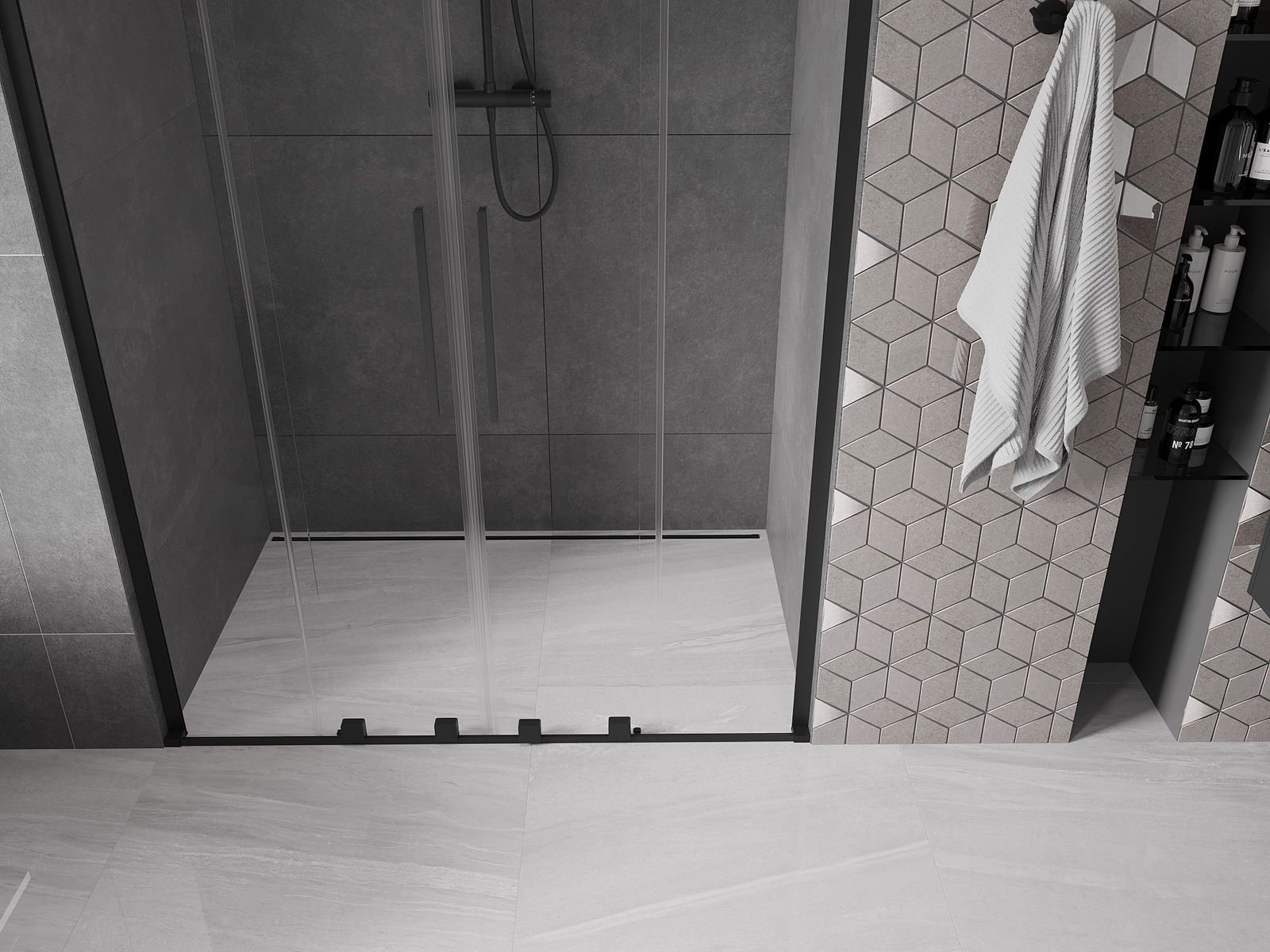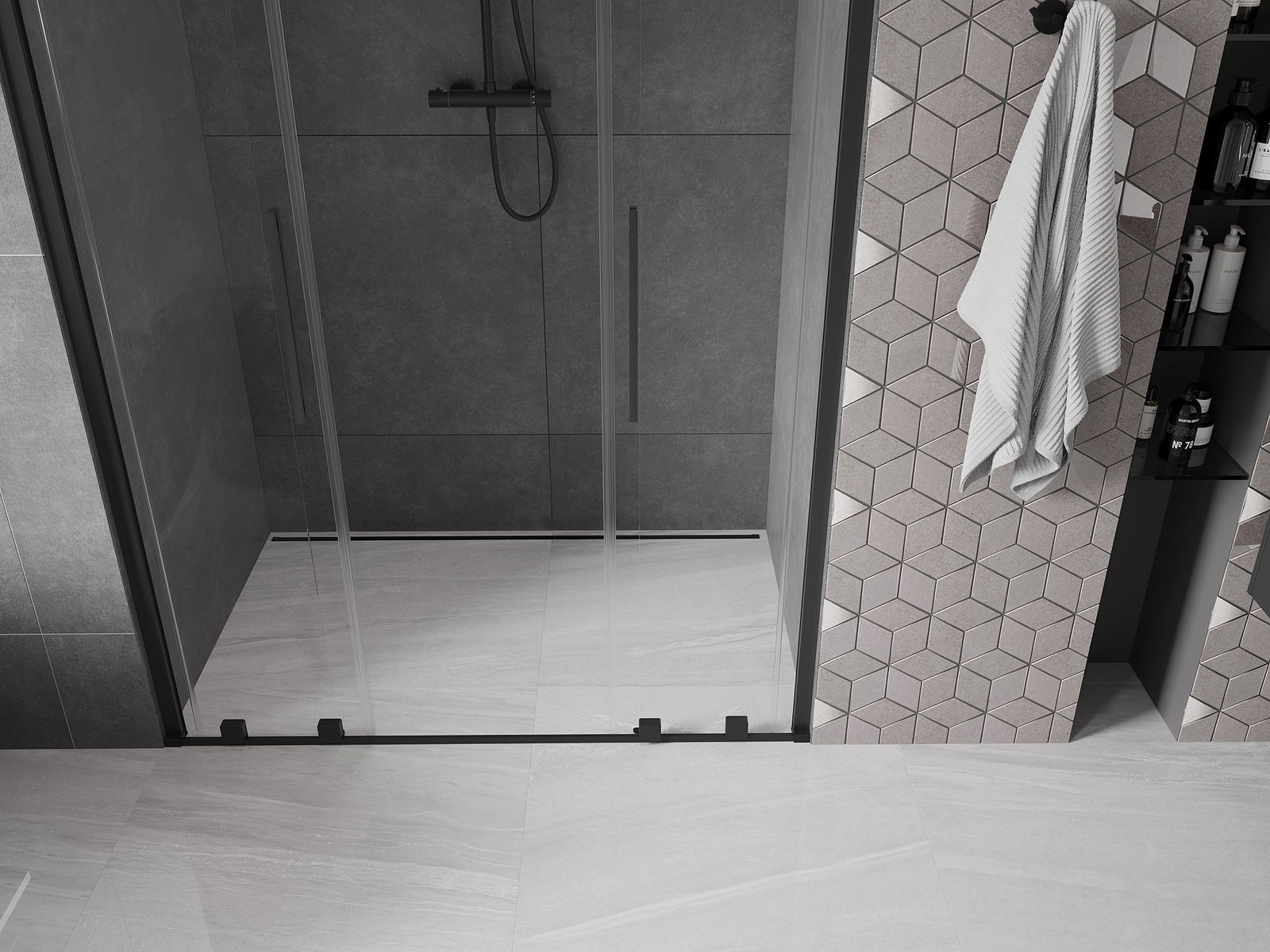 En handlecht a komfortabele Grëff ass aus Edelstol gemaach. E modernen Design an enger Ofschloss der Faarf vun de Profiler ugepasst, gëtt et en moderne a stilvolle Look, deen d'Aesthetik vun all Buedzëmmer ervirhieft.