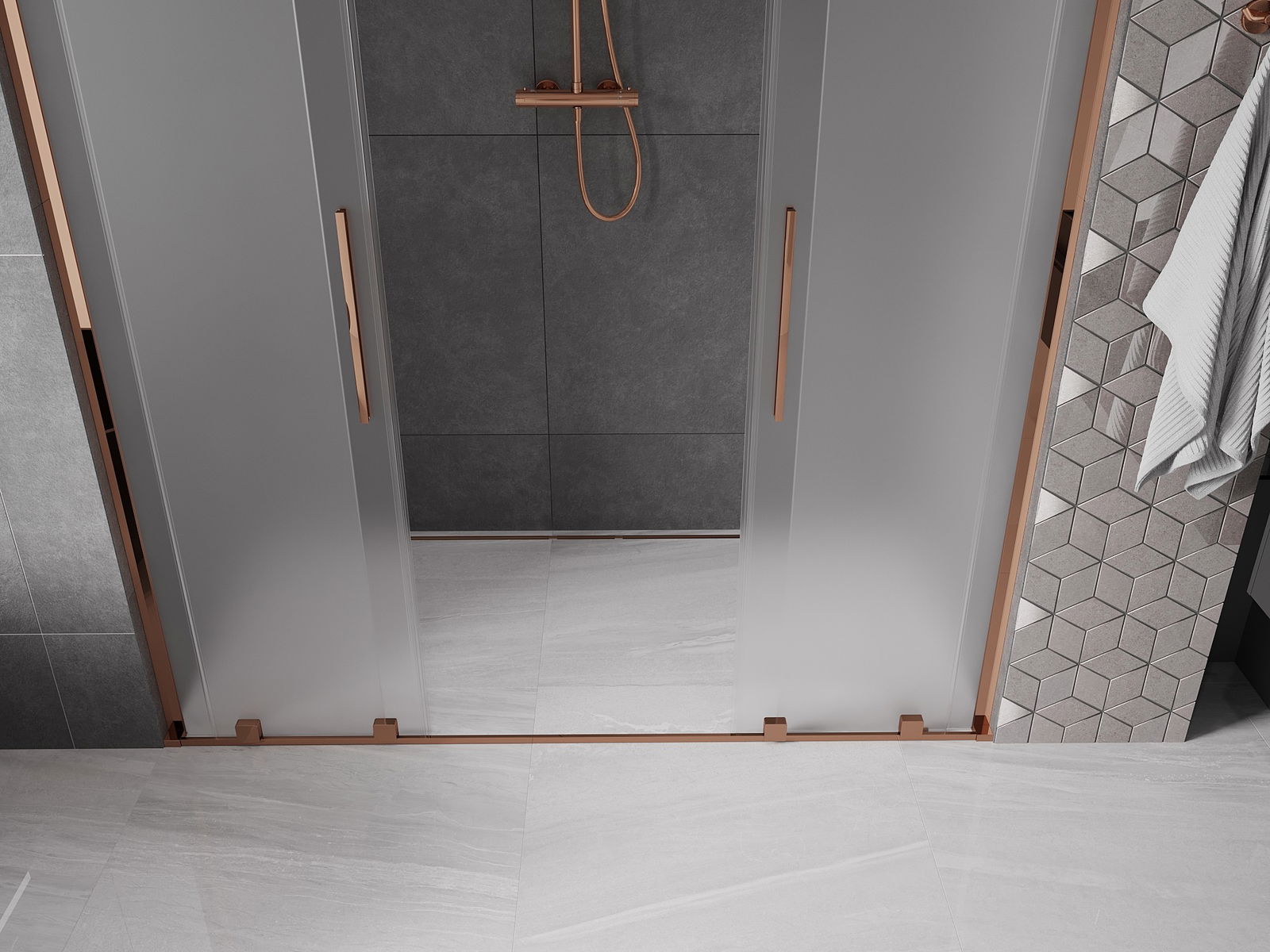Mexen Velar L Duo Rutschdreck Duschdier 200 cm, Raureif, rosa Gold - 871-200-003-32-60