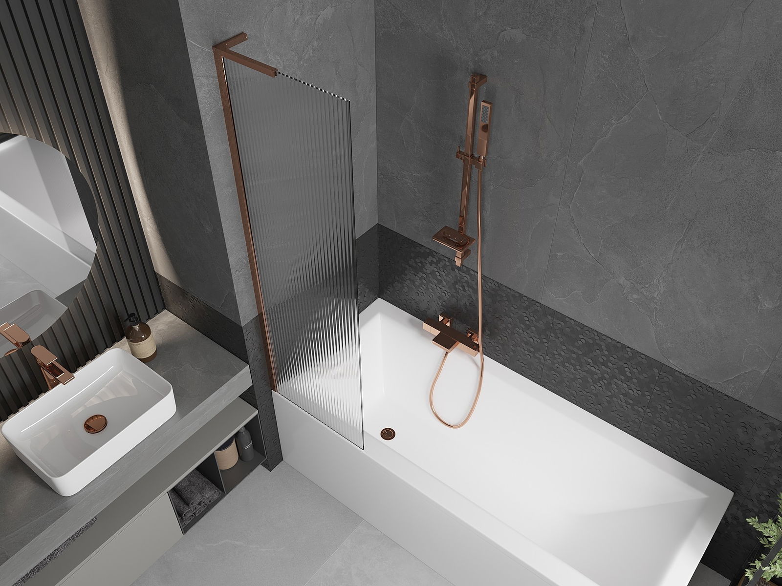 Dank dem universellen Montagesystem kann de Paravent je no Bedierfness op der rietser oder lénkser Säit montéiert ginn. Sou kanns de eng Dusch plangen, déi op de Raum vun der Buedzëmmer ugepasst ass.