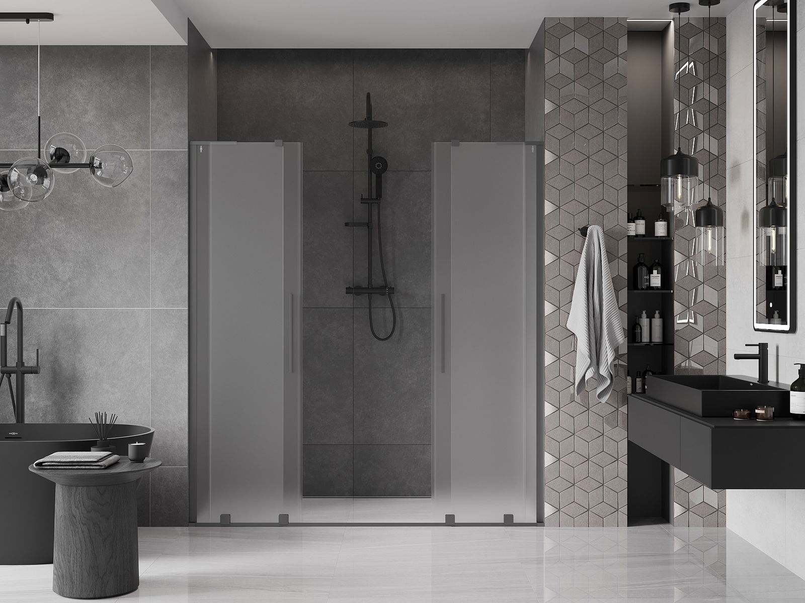 Mexen Velar L Duo verréckbar Duschdier 180 cm, geprägt, Waffestol - 871-180-003-32-95