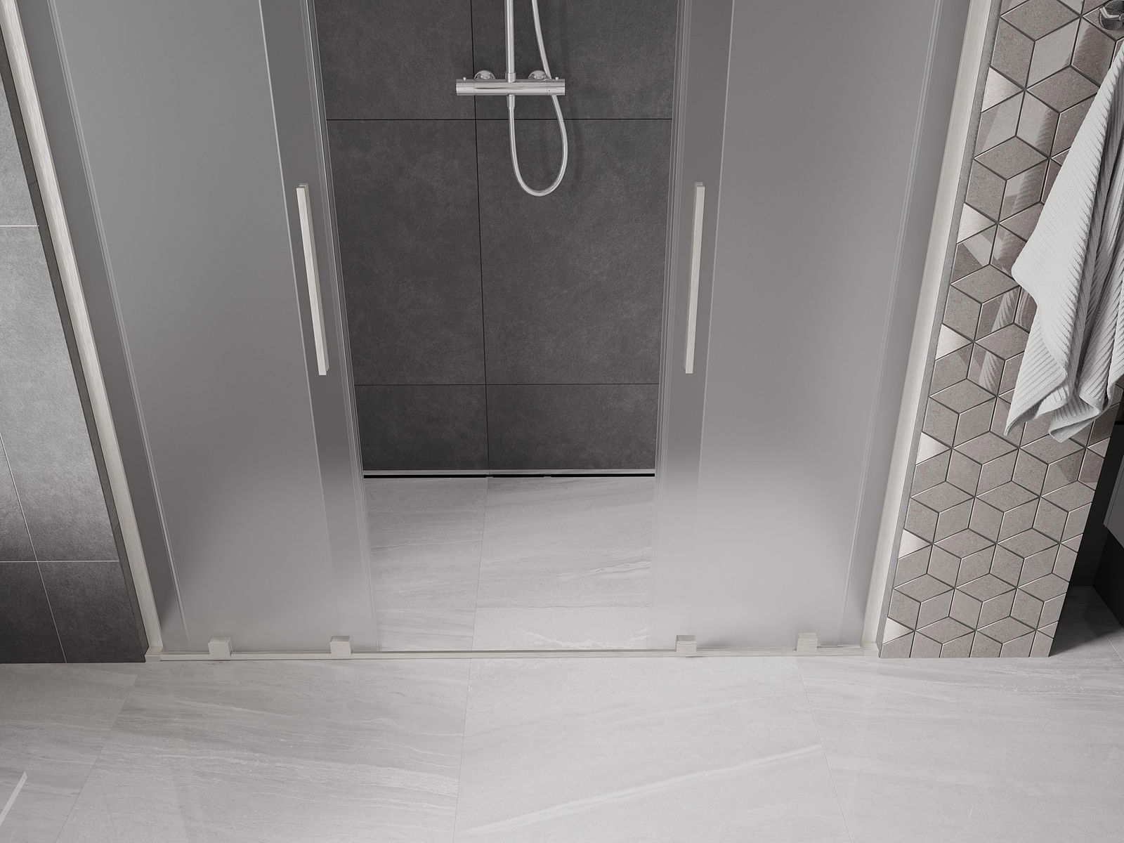 En handlecht a komfortabele Grëff ass aus Edelstol gemaach. E modernen Design an enger Ofschloss der Faarf vun de Profiler ugepasst, gëtt et en moderne a stilvolle Look, deen d'Aesthetik vun all Buedzëmmer ervirhieft.