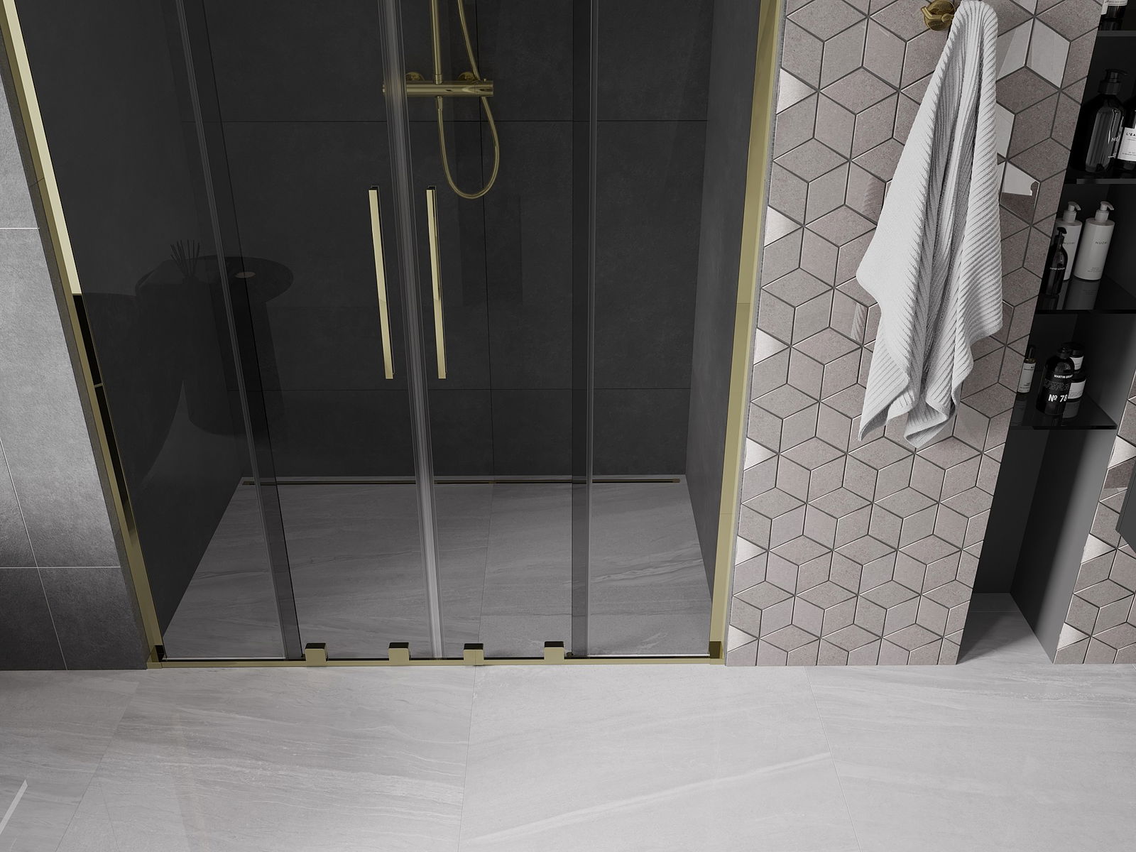 En handlecht a komfortabele Grëff ass aus Edelstol gemaach. E modernen Design an enger Ofschloss der Faarf vun de Profiler ugepasst, gëtt et en moderne a stilvolle Look, deen d'Aesthetik vun all Buedzëmmer ervirhieft.