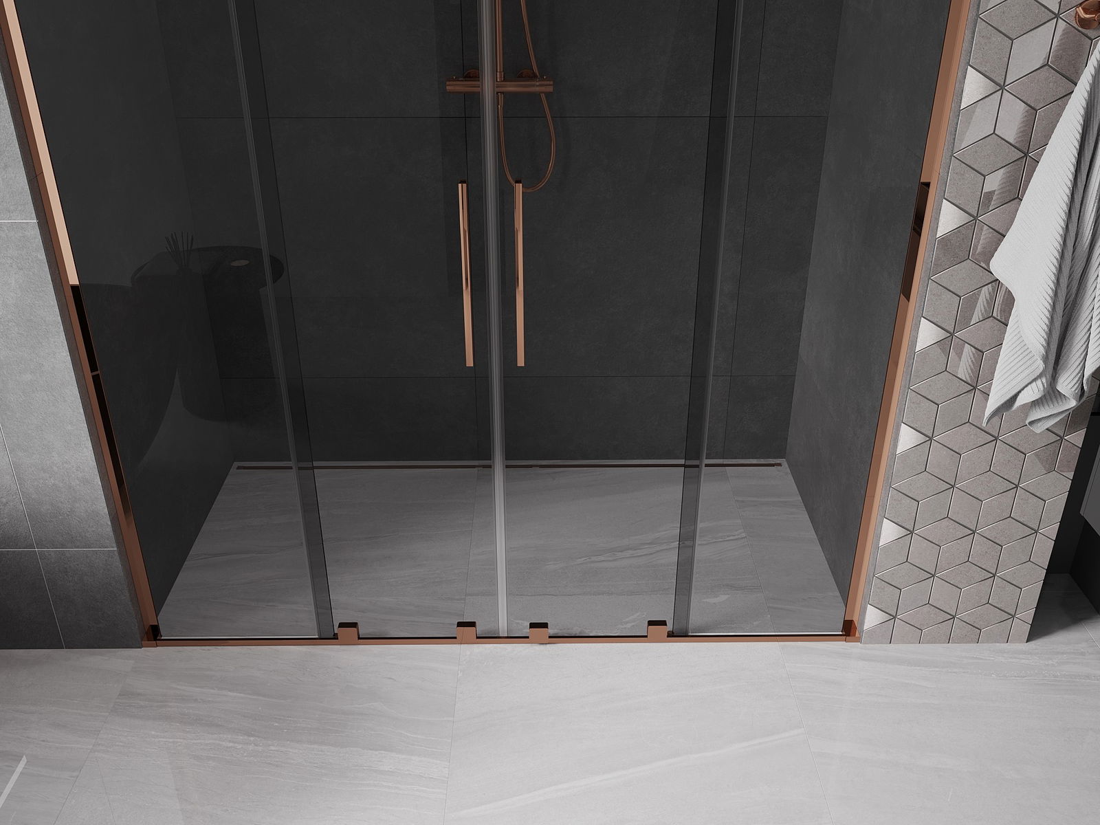 Mexen Velar L Duo Schiebetüren 200 cm, Grafit, Rosa Gold - 871-200-003-42-60