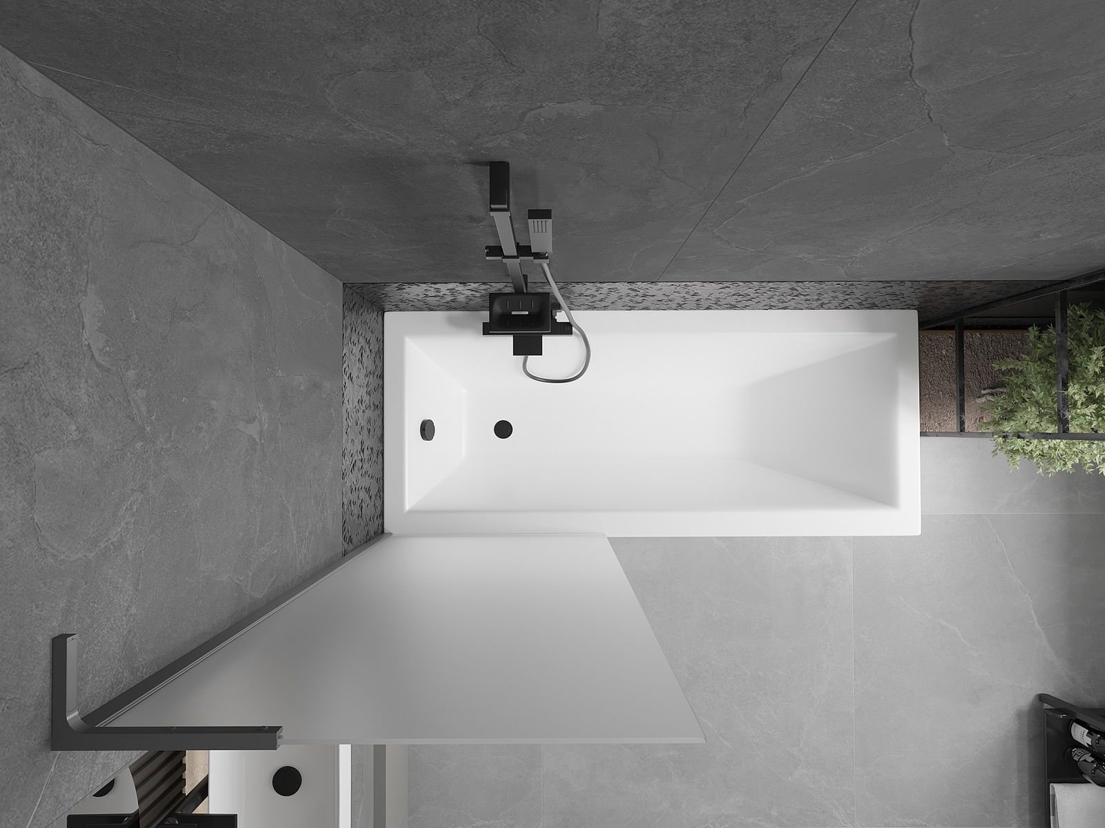 Dank dem universellen Montagesystem kann de Paravent je no Bedierfness op der rietser oder lénkser Säit montéiert ginn. Sou kanns de eng Dusch plangen, déi op de Raum vun der Buedzëmmer ugepasst ass.